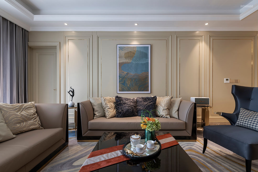 点、线、面交织,设计师为主人勾勒出现代时尚与古典美韵并存的轻质感风。