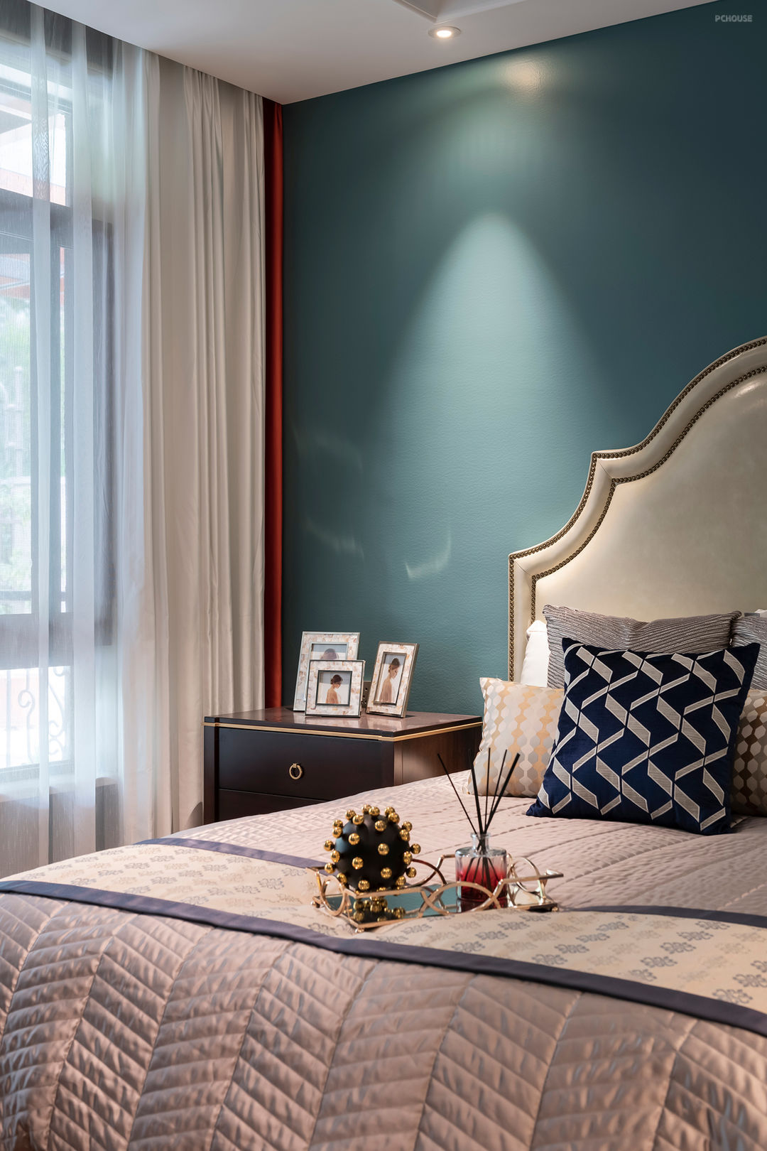 卧室从硬装的墙面造型到软装的陈设,都遵循对称原则