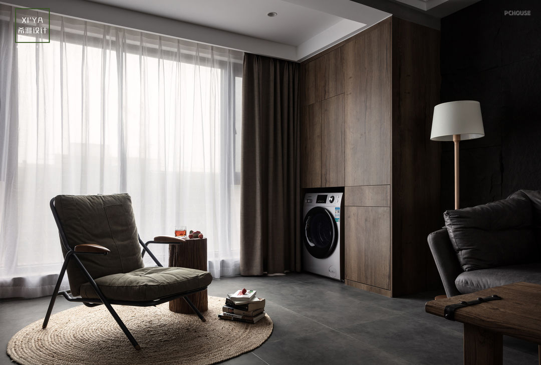 新西兰united strangers styvest帆布休闲椅,也有一番复古的味道,搭配舒适的亚麻地毯,使人触感上能感到舒适与柔软,引导人的心里感受到温暖。