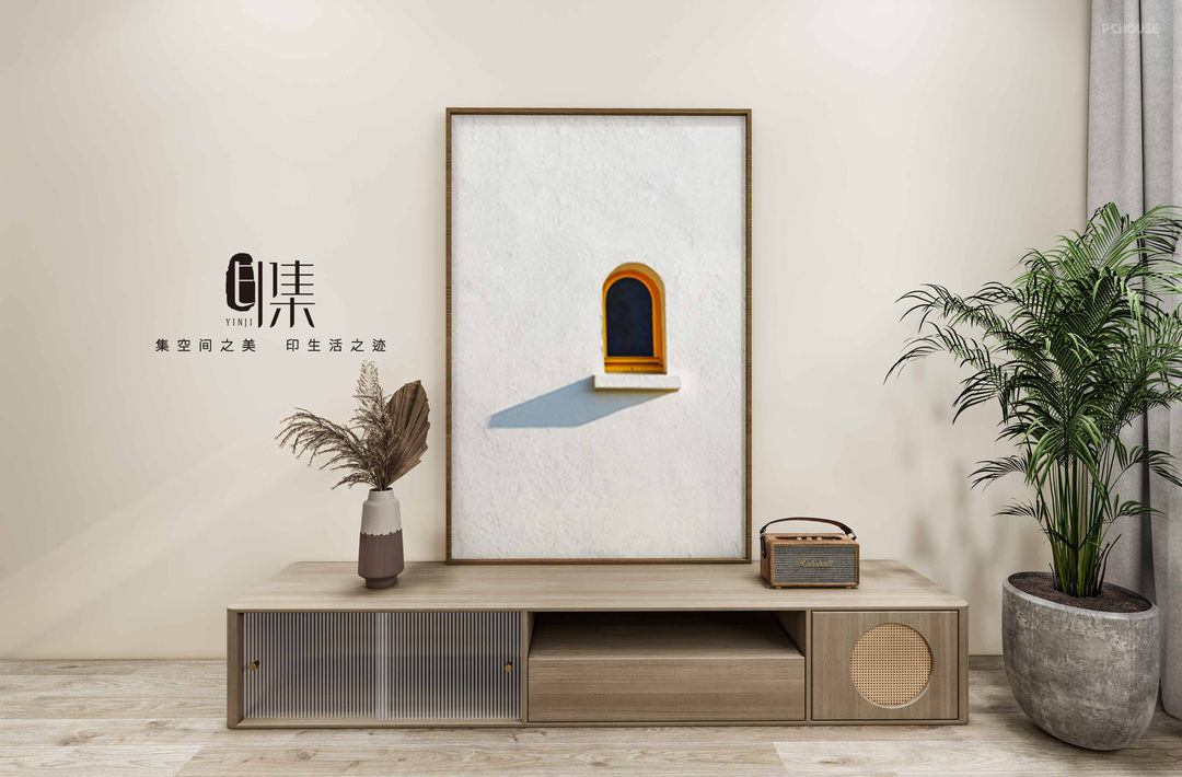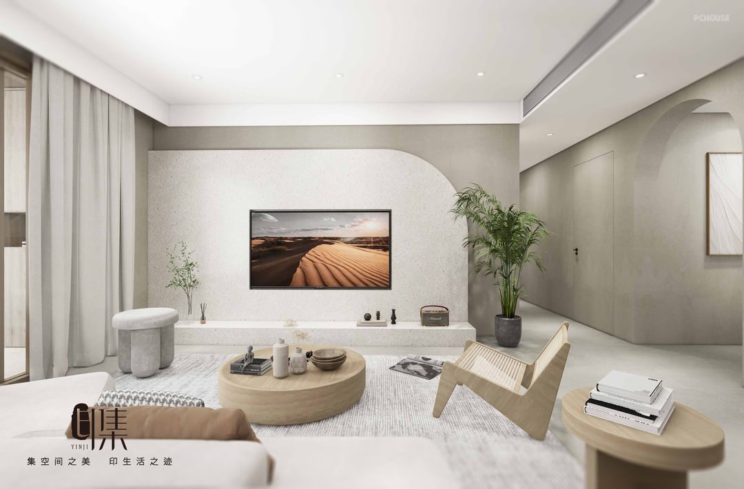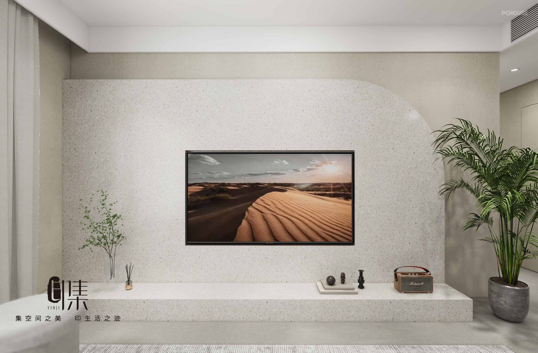 电视墙采用具有天然质感的水磨石,呈现出原生态质朴的美感。