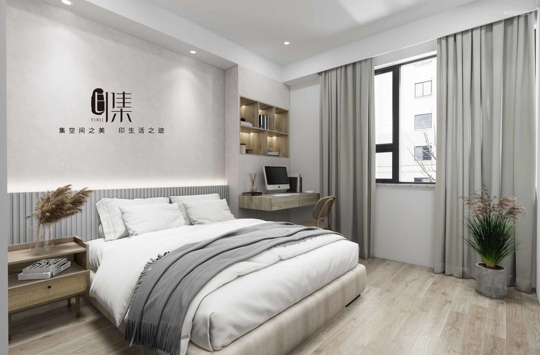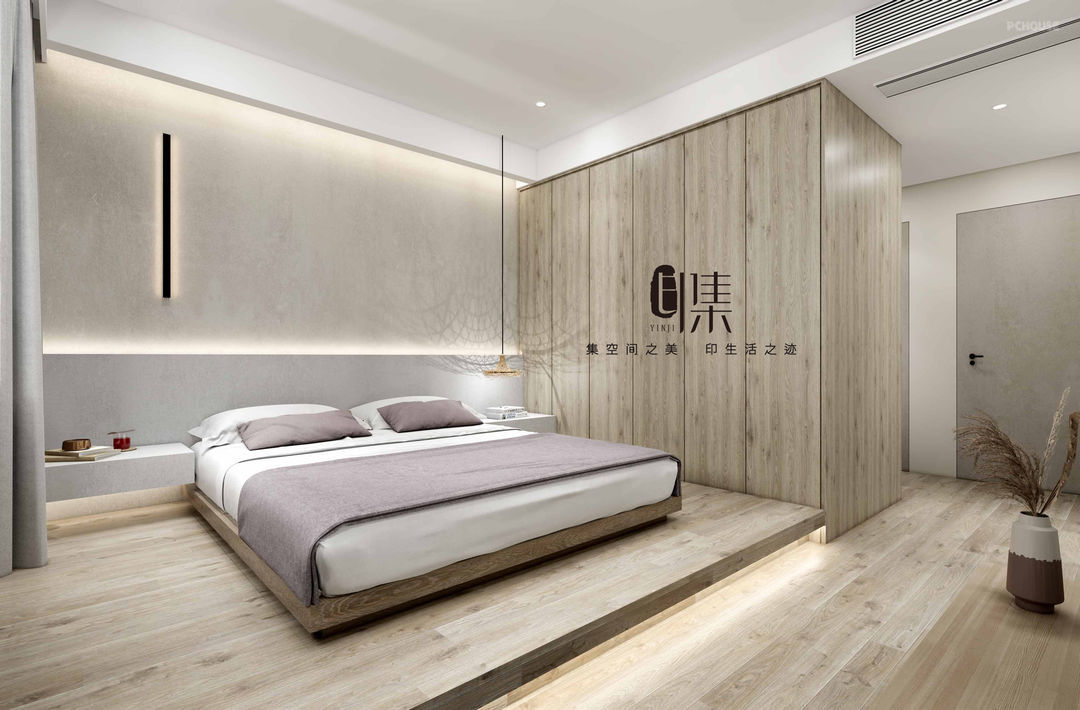 卧室的地面,做了抬高处理,不仅提升空间层次,还透露出一种高级感。隐藏式光源是侘寂风灯光设计的首选,营造出的空间氛围更加温馨。
