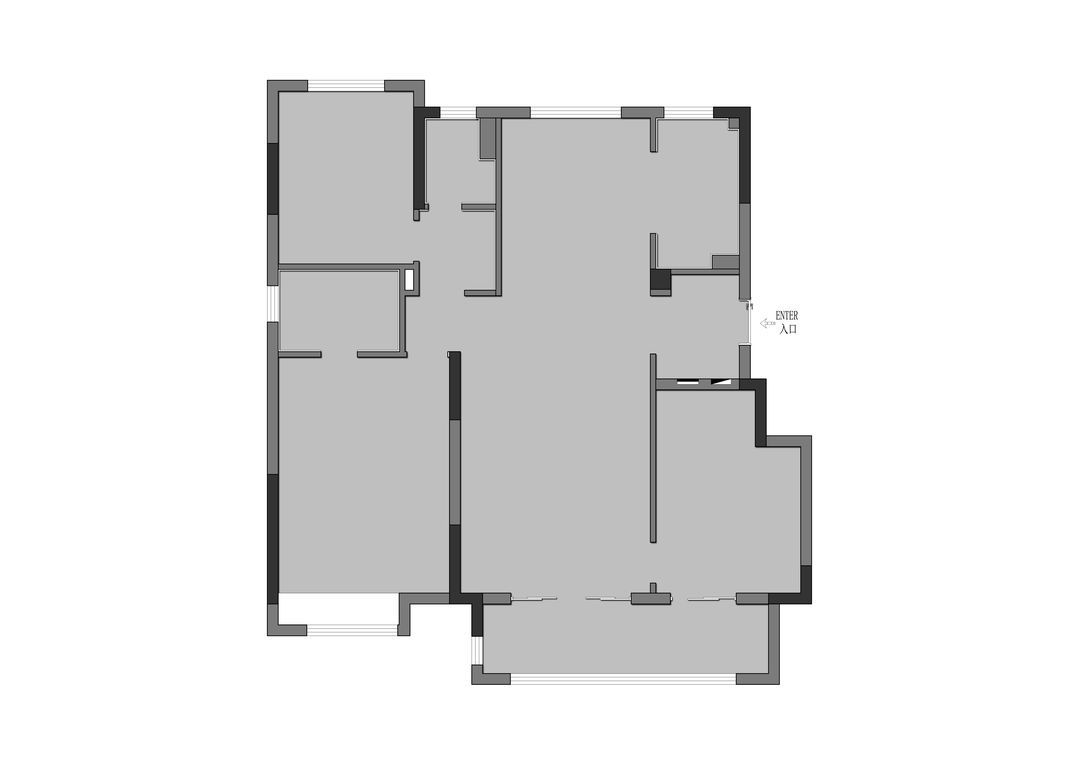 原始平面。原始户型为3房2厅1厨2卫布局,中规中矩。