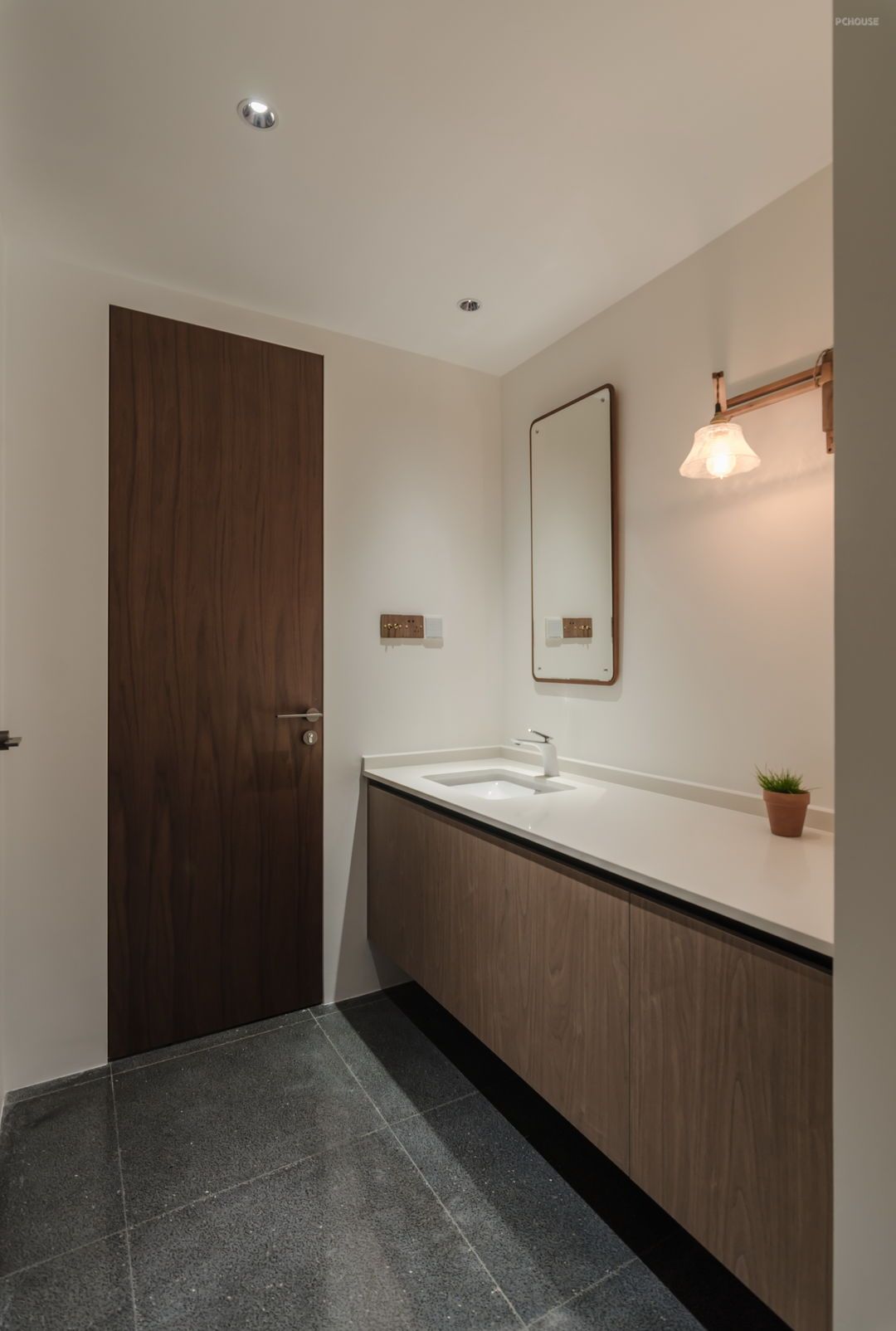 ▲客卫干区。无框门、无踢脚线的工艺回应空间回归本质的生活态度。