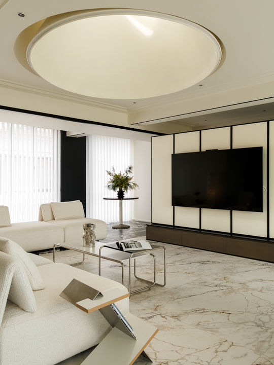 地面瓷砖一通到底,电视柜采用嵌入式,让整个空间更加简洁。