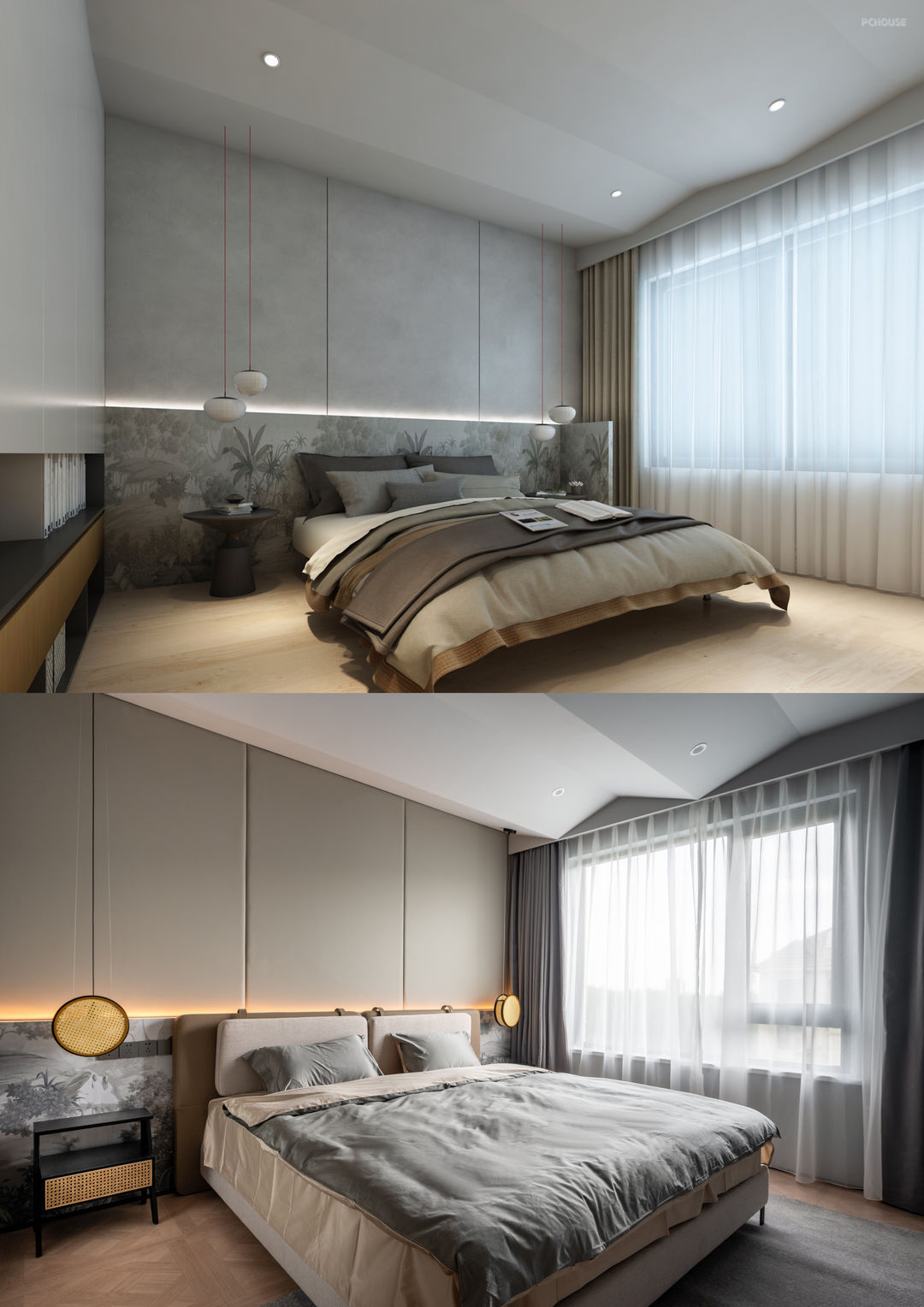 二楼的原始空间被切割成一个个小块,主卧虽是套间但是空间之间相互独立。