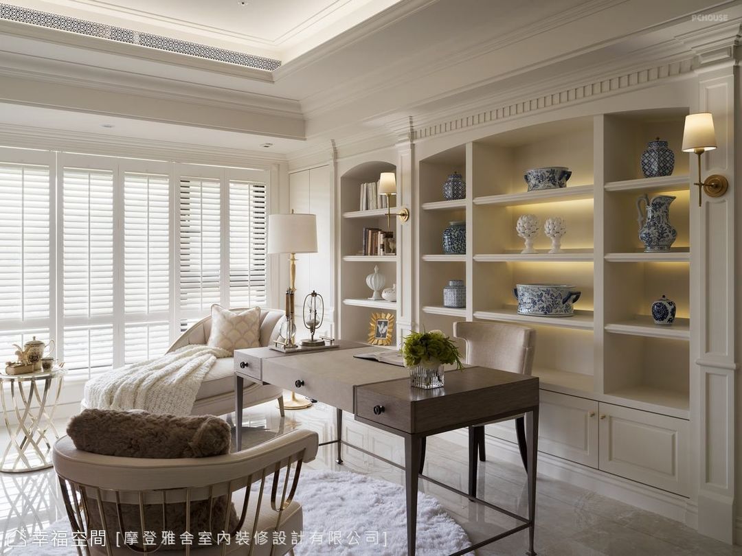 王思文与汪忠锭设计师曾为女屋主的姐姐,擘划出极具风情的复古巴黎时尚宅,尔后当女屋主购入新宅时,也毫不犹豫地找上摩登雅舍室内装修,以柔美的法式线条勾勒居家轮廓,将空间大梁转化为居家特色,更注入汪忠锭设计师一贯的手绘图腾,织构出优雅唯美宅邸。