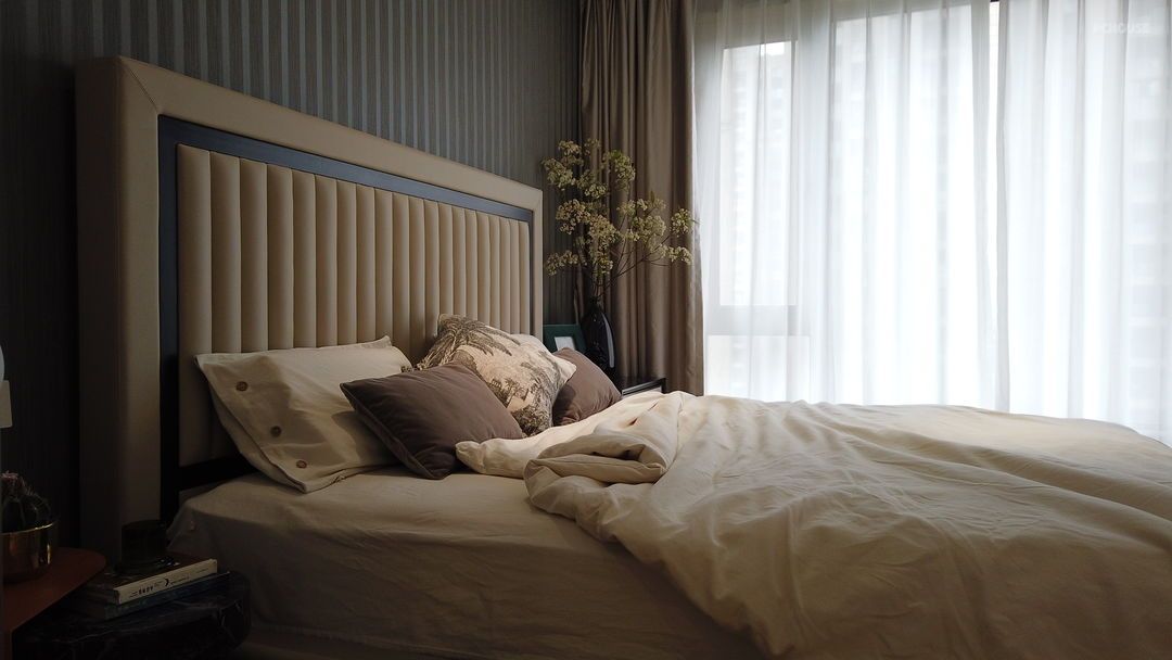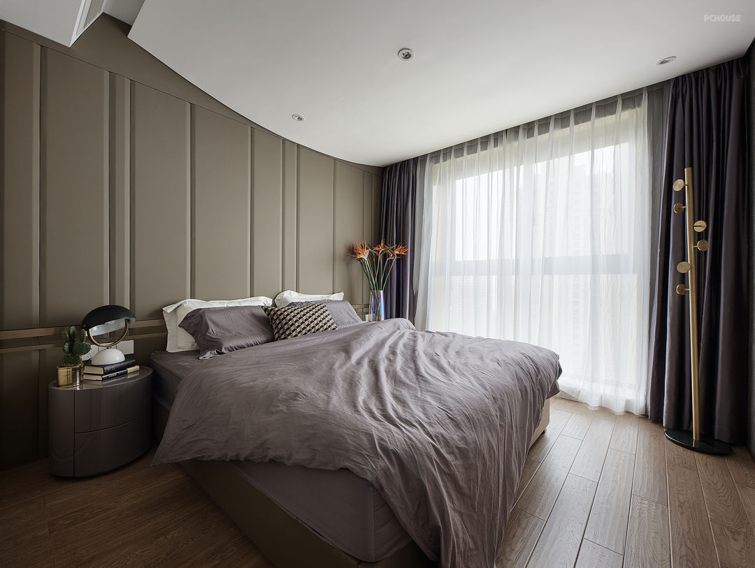主卧套房「任性」地占据全屋近1/4的面积,功能强大。步入式衣帽间、连贯梳妆台的洗漱区、整墙试衣镜。