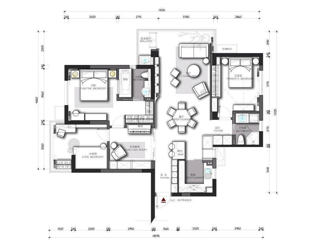 客餐厅集西厨一体,方便日常茶饮/烘焙操作。灰色基调的家具着重质感、舒适度和耐用性,搭配软饰撞色点缀,可以随喜好/季节更换。