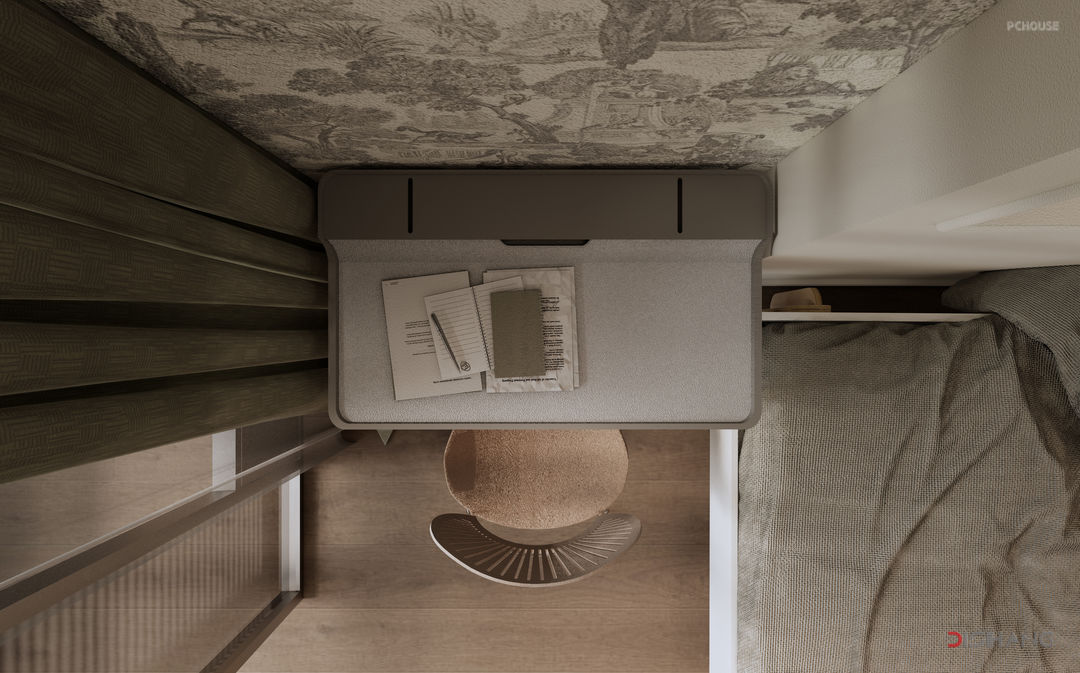 2、大女孩房扩大受光面积,与画室形成回字型动线又增添趣味性;