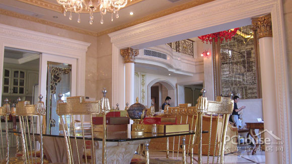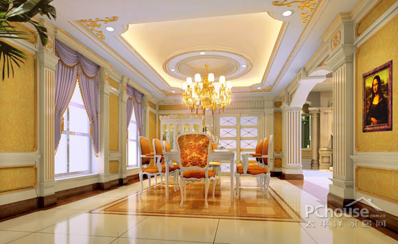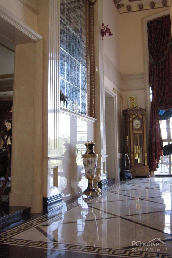 前言: 本案以暖色为装修主色调,运用石膏托头、彩绘玻璃、暗纹墙纸、铁艺、油画等元素,很好地营造出一种古典欧式气氛。而大厅的宫廷式水晶吊灯,天花顶的镀金装饰,墙身大面积大理石,石线的运用及处处精益求精的细节处理,再配以古典华丽的欧式家私恰到好处地显示出欧式风格的奢华。