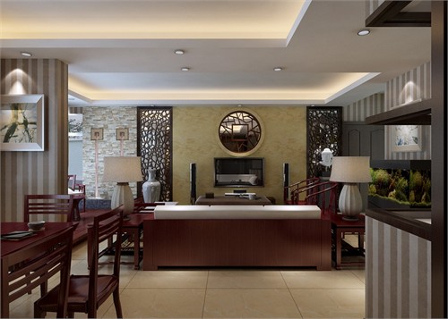 前言: 相同的空间,却是一种不寻味的追求,正如两栖人物享受不寻常的品位!对称是中式手法的原则,在简单大方又带有质感纹理的大理石,再两边借助传统式的中式花格。一种高贵的现代中式就完全赤裸在大家的眼球!