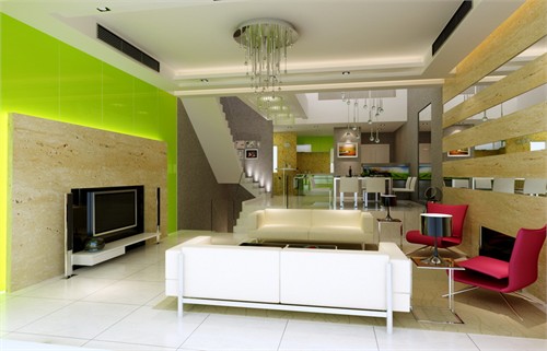 前言: 轻松、明快的青苹果色贯穿整个空间,打造出一种别具风格特色的高档家居别墅。空间处理上,尽量使之通透宽敞,采用不同材质的气质虚拟性划分每一个空间功能,让每一个空间贯穿起来,形成一种互动性的对话。
