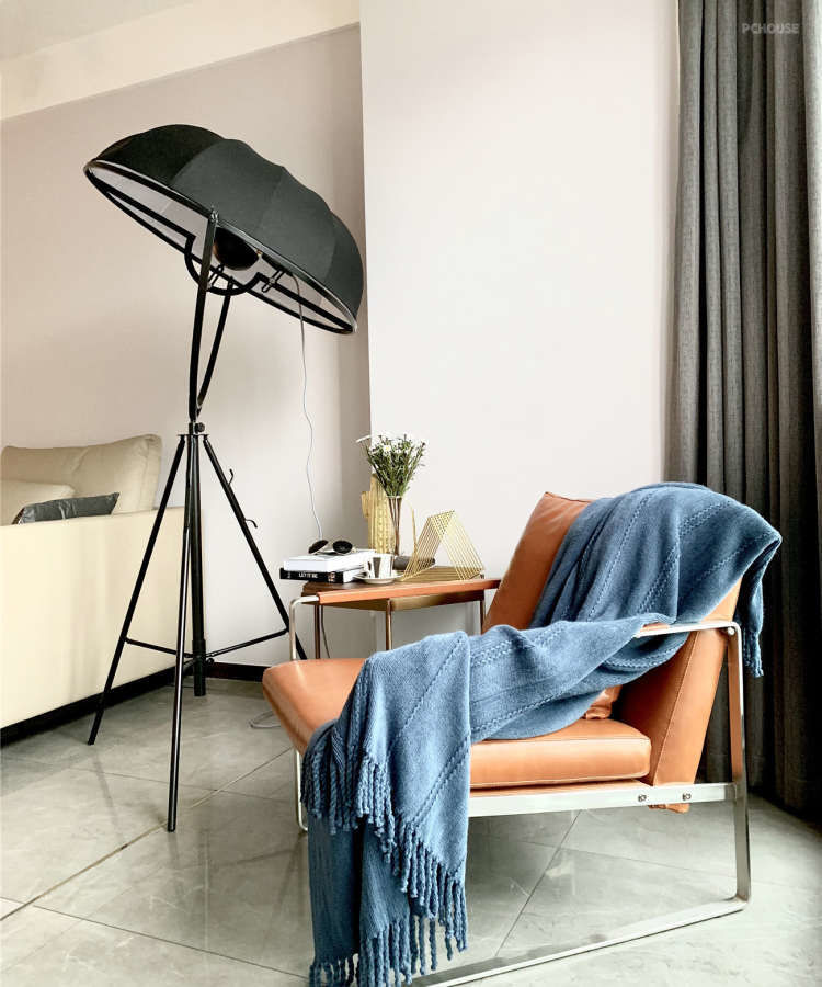 /休闲椅?3289/边几?1430/落地灯?1470打造窗边精致一角,光线充足的居心地,高品质超纤皮休闲椅,棕色给人以放松的感觉,金属元素增添了精致的成分,在某些墙面我们使用浅灰色,拉低整体的亮度。
