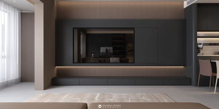 /电视柜 2516尺寸1800*400*450mmL型的深灰色木地板电视墙,与传统电视墙相比更加简洁耐看,不想毫无造型,又或者太过复杂,木地板上墙可以借鉴一下~