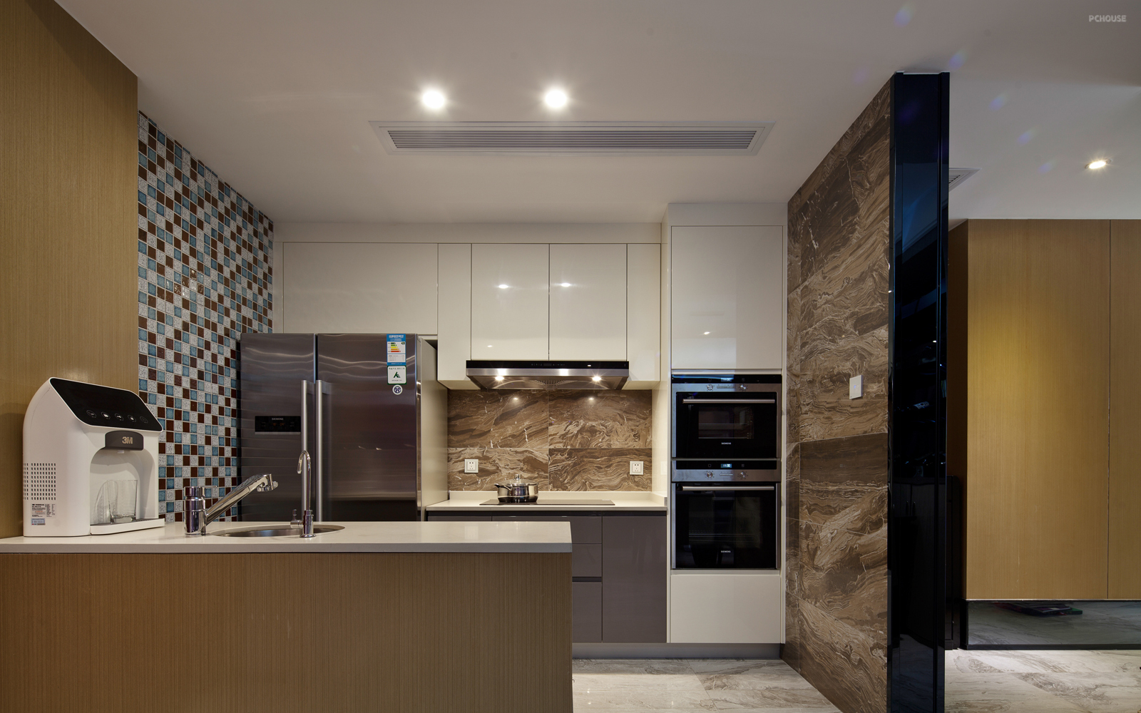 前言: 佛山东怡美居设计说明 项目地址:佛山顺德 空间格局:4房2厅3卫 外加户外花园 设计风格:现代简约 房屋面积:120㎡+花园100㎡ 房屋类型:私人住宅 工程造价:50万 主设计师:谢法新 设计机构:MAX马思设计(佛山)公司 主要用材:银杏木饰面,银梨木饰面,灰镜,黑钛不锈钢, 意大利REX陶瓷、芬兰木,马赛克等 业主印象: 亲切随和的年轻夫妇,在旧屋改造,始终非常尊重设计师的专业精神;在沟通的过程中与设计师之间产生了许多关于生活的共鸣,在此过程中设计师与业主彼此交换了对于空间的 美好遐想;凭藉这样的深度交流,在作整体观念规划时,便朝着干净温暖却又彰显个性的方向进行设计着手。 设计重点: 简约的现代风格是许多年轻屋主装修时的最爱,但因设计细节被简化,不免会有流于平淡之感。为了杜绝这样的疑惑,设计师运用清新质朴的原木饰面作为主色调营造自然气息,并搭配镜面反射出轻金属音乐般时代的节奏,塑造亲和而不失个性的住家印象。 设计概念: 这是一间位于佛山顺德乐从的旧公寓,楼龄超过15年,漏水,管线老旧等等问题都已经浮现出来了。隔间,卫生间,厨房等等空间也不符合年轻户主的现有需求,经过现场勘查与沟通之后,我们决定进行整体改造。在格局设定上,我们不依照传统式格局配置方式,而是采用创新的配置方式,让空间功能可以多样化使用。 设计师将餐厨区安排成入门的第一个区域,并呼应电视背景墙增设一座吧台,将客、餐厅做开放式安排,完成整個公共区的骨架。這样的做法有几如下用意:首先,食物采购回家后可直接进入厨房,强化动线效率;再者,吧台提供了界定范畴的功用,也让愛泡咖啡的男主人能有更大弹性运用空间。开放式设计不仅让客、餐厅动线更顺畅,也令视线能自在游走,对于放大空間视效颇有助益。 由于之前房屋的设计不合理,使非常热爱运动的户主没有一个舒适的区域健身。由此 ,我们把健身房安排在户外花园旁边,希望户主可以一边运动一边感受大自然的气息。公共 空间,将户外花园原有鱼池,雨棚移除,换上清雅脱俗的毛竹、草皮,花岗石阶,户外木, 筷子砖等,让庭院更具简约休闲感及实用性。微风,惬意地小酌一杯也不错。