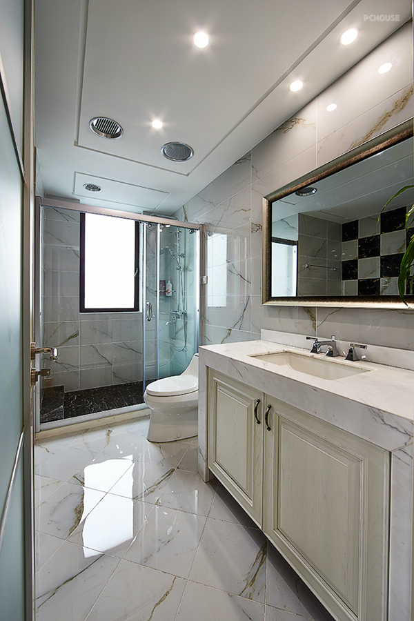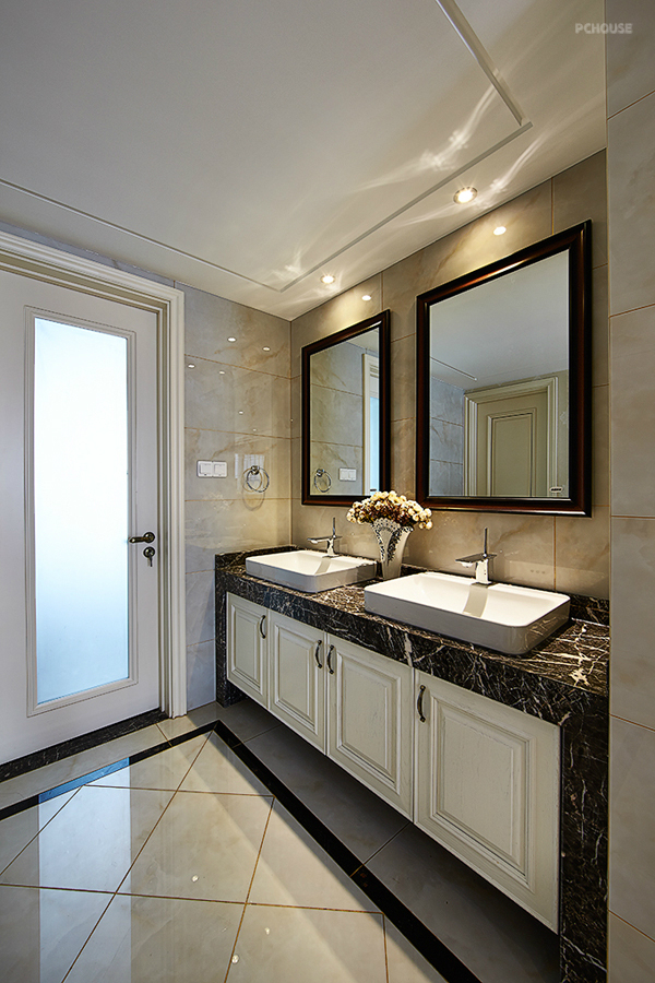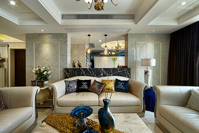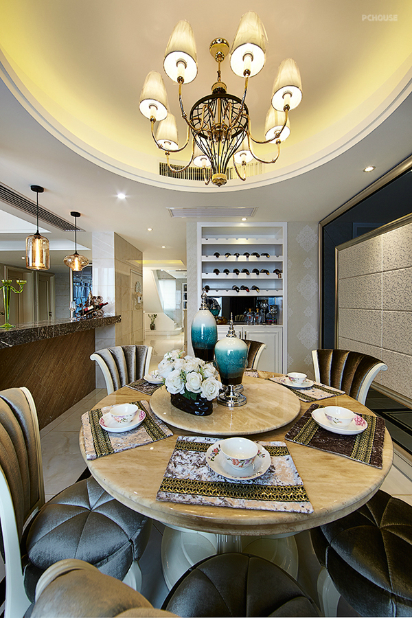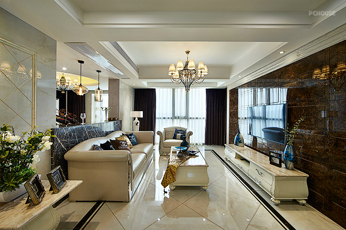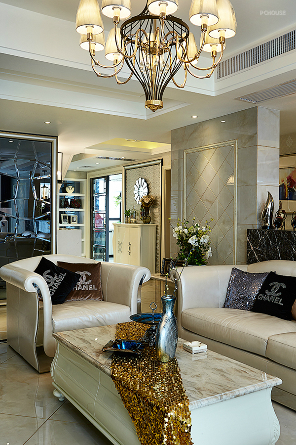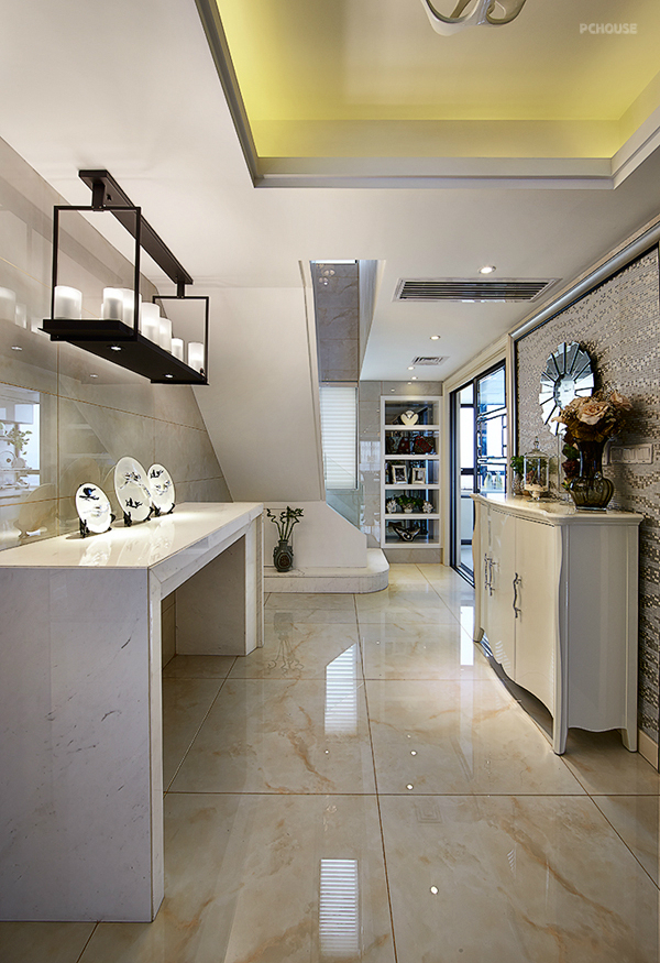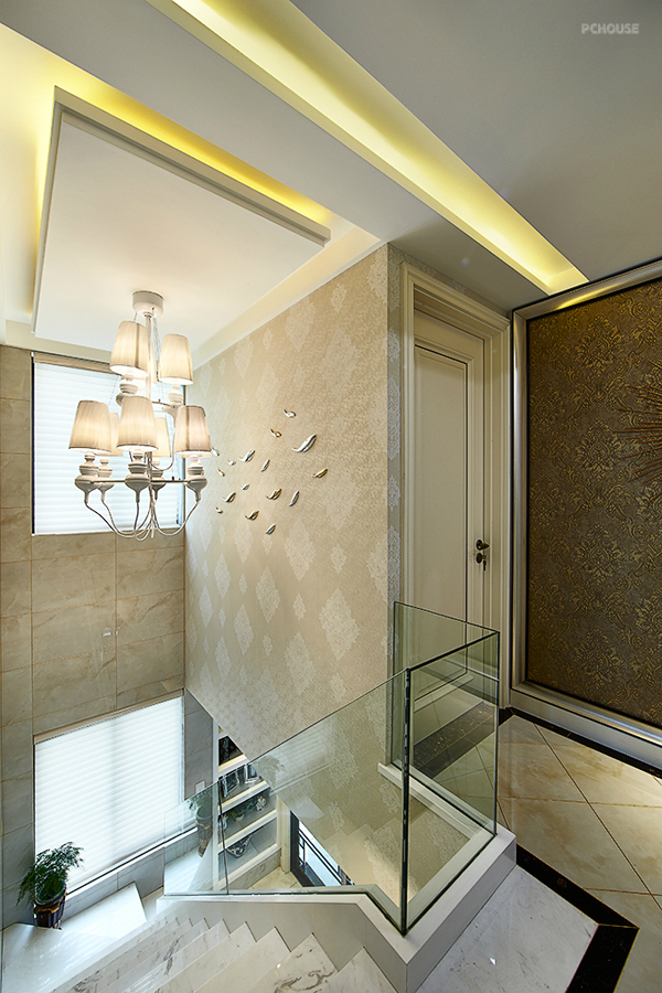 前言: 设计师:彭辉 楼盘:钱江湾花园 户型:LOFT( 五室三厅三卫) 建筑面积:260㎡ 装修风格:轻奢华 主要用材:雅士白大理石、微晶砖、灰镜、软包、墙纸。 作品说明: 现代风格的简约和复古的奢华风在本案得到了完美的融合,既满足了现代人的生活习惯,充分发挥了实用功能,又继承了复古奢华风,融入了经典复古元素,打造出一个大气雅致的优良家具环境。本案几乎全部直线的硬朗线条构图,吊顶、墙面、家具、软装都鲜用曲线造型,显得沉稳典雅,复古而少浮夸。所有房间都装有地暖,环保且导热好。雅士白大理石、微晶砖、灰镜等材料的运用更增添了深厚意蕴,内敛而少张扬。