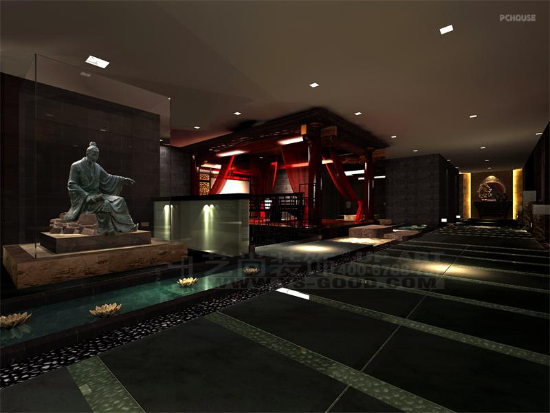 前言: 孔府家宴是以古代为基调的饮食场所,总面试450平方米,设计采用中式古典的风格,这里既不像田园也不像宫廷,而是让你回到春秋战国时期稳健大方的建造风格。厚重的大尺寸青石作为地面的铺贴材料,奠定了整体的基调。墙面不时有青铜、竹简、砖雕作为点缀,增加了文化气氛。一抹红色的纱帘,悠扬的古筝,静静的气氛中荡起你激昂的侠骨柔情。