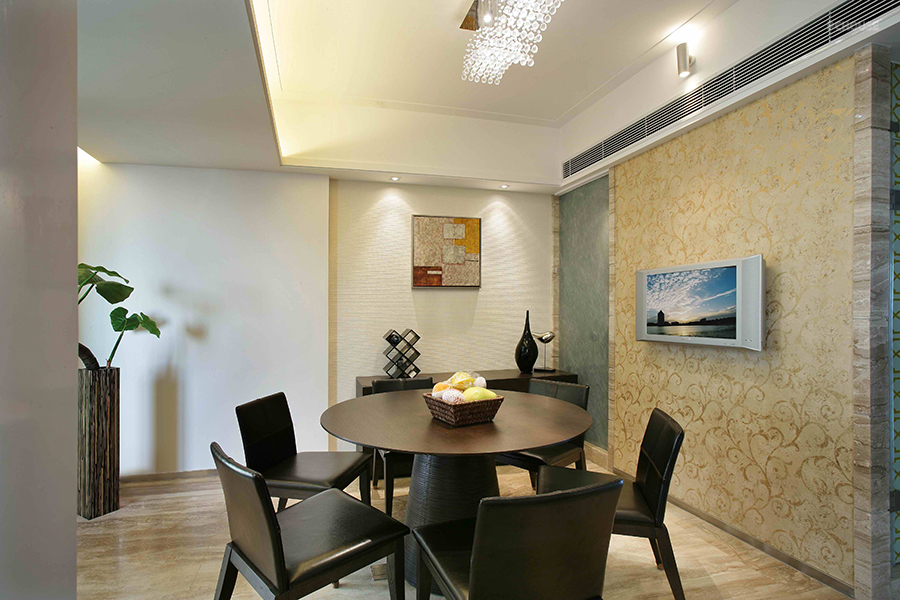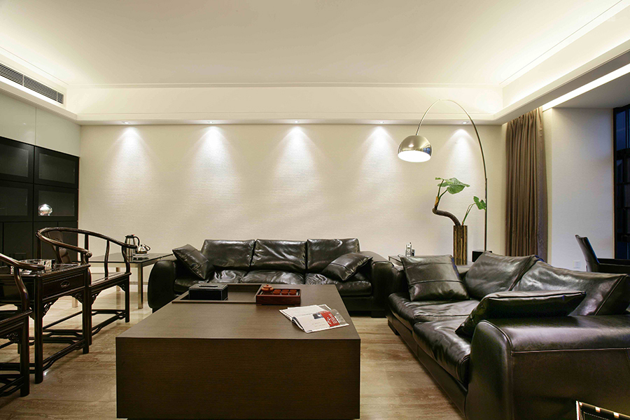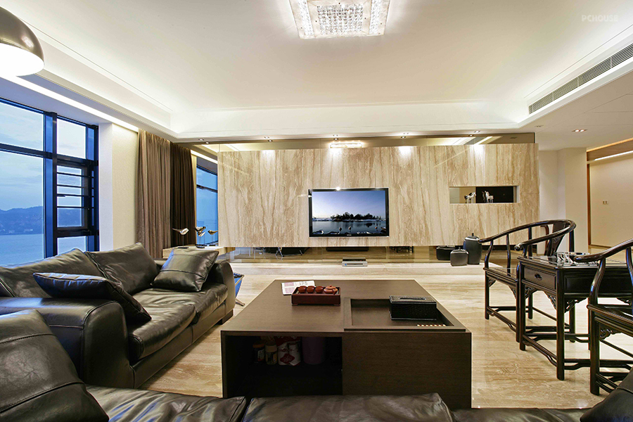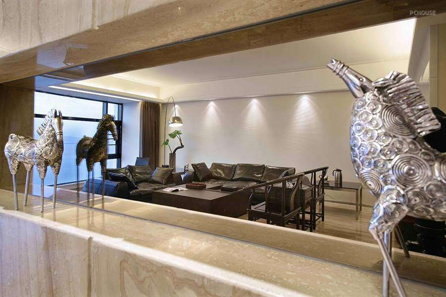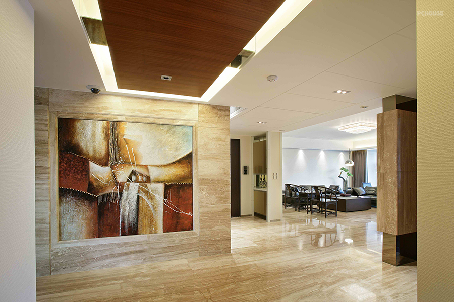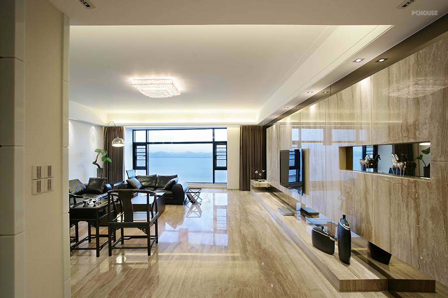前言: 在追求理想世界中,心是疲惫的,每个人都会有渴望属于自己的一个家,一个避风港。 简.意.雅的感受渗透于整个空间每个细节中,统一采用天然蒂娜米黄石板,冷色调软装饰。工整和谐,由此传达审美意境的理念。让户型布局分明,大气舒适。 生活离不开艺术,客厅里时尚简约的黑色油皮沙发搭配传统中国式太师椅。时尚与传统碰撞,原始文化点燃现代激情,掀起一股混搭风。加上一些青铜、银式的装饰品,从而也体现出了不浓不淡的中国风。