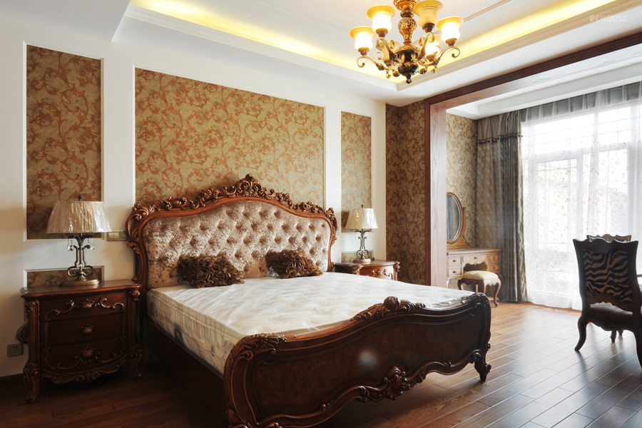 仿古的木质双人床、大花的床头墙纸、碎花图案的窗帘,和放在阳台一角的休息座椅,午后坐在阳光下,望着远方,任凭阳光的洗浴,种种的生活习惯都体现着主人独特的生活品味!