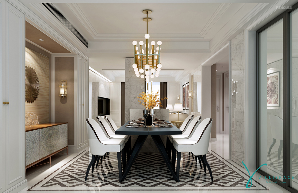前言: 设计单位:苏州易创威利斯建筑设计顾问有限公司 项目地址:苏州·常熟 面积:183平米 户型:复式公寓 主材:爵士白大理石、圣卡罗棕大理石、不锈钢金属、铜质金属、硬包、壁纸 风格:现代奢华 设计说明 作为样板房,设计师的初衷是要做出符合现代人的审美,而又不简单的设计,从而能够迎合更多消费群体的喜欢,因此,做出了一套有欧式风韵又包含现代设计的作品。从设计开始到结束,除了直观的设计美感外,空间的布局是整个设计的亮点,原始的建筑结构存在诸多弊端,进门没有玄关和鞋柜,进门一览无余,同时餐厅开间过宽,二楼三个房间,一个外卫,不符合常规的生活习惯,因此经过改动后,将一层增加的玄关空间,餐厅也既有餐桌功能,还有了西厨、休闲区的设计,而二楼通过现浇,给主卧增加了更衣室、卫生间,十分舒适。