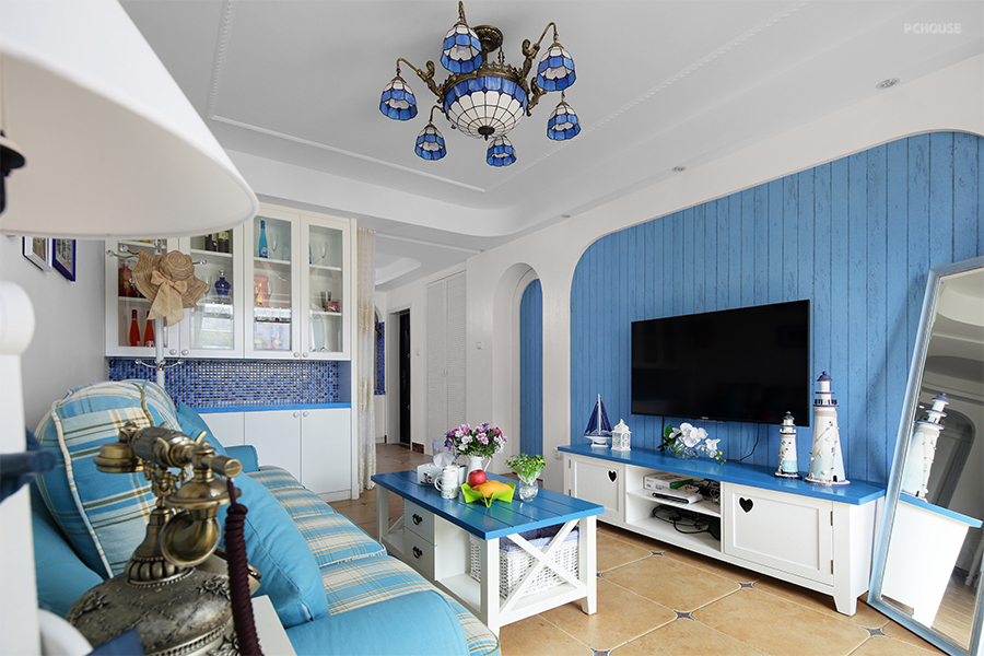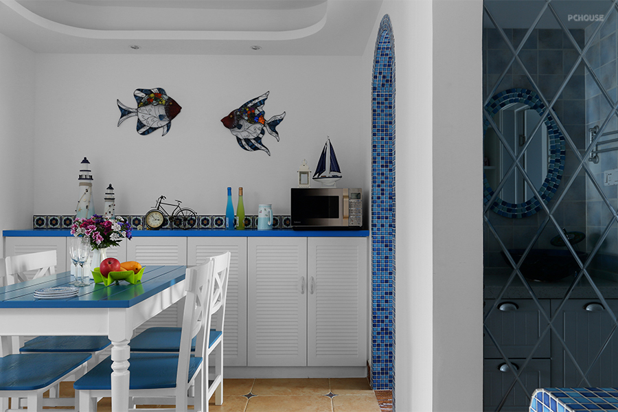 前言: 本案为蓝白地中海风格,来自“海”与“天”明亮的色彩,好似一场梦幻的童话。面积只有67平米,平面设计中,设计师对户型做了合理的结构调整,使各个空间功能明确,充分利用每一寸空间,业主为一对年轻小夫妻,鉴于业主对风格的喜欢,最终选择蓝白地中海风格,来自“海”与“天”明亮的色彩,好似一场梦幻的童话。