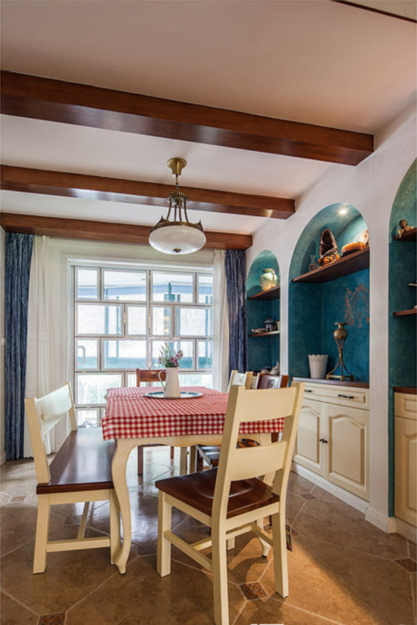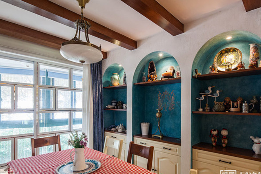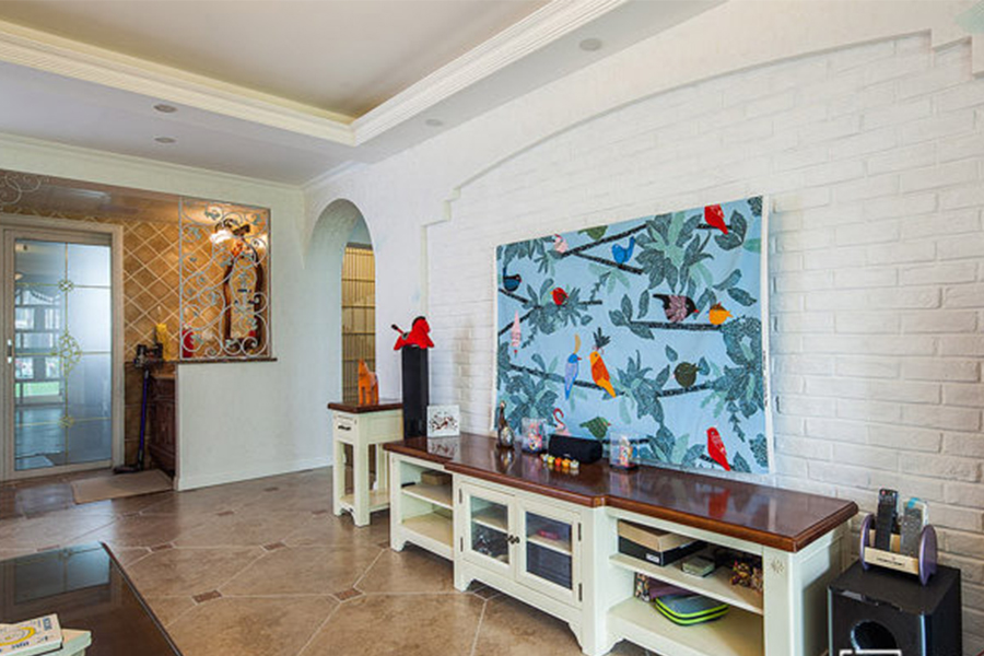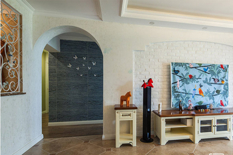 前言: 复古的黑色门钮,画龙点睛,静雅美丽。另一侧的收纳柜中间为开放式的展示空间,变形H结构,赋予立面创意的活力。静雅的竹帘,环保健康,可以根据需要调节出适宜的采光和舒适的环境。室内,仿古地砖是朴实的大地色,些微的暖调赋予人踏实与亲切感,嵌入的装饰瓷片,点缀出家的生动表情。纯天然基材的墙面,深深浅浅的肌理,零星点缀的海螺、鱼儿,犹如地中海边的白沙滩,生命与自然的脉动交织在一起。对于热爱生活的人们来说,每一天都是精彩纷呈的,也许,一件家里的摆设,一个不经意的发现,都会改变我们的生活,让生活充满乐趣,让生活多姿多彩。一个充满爱与梦的浪漫之家。