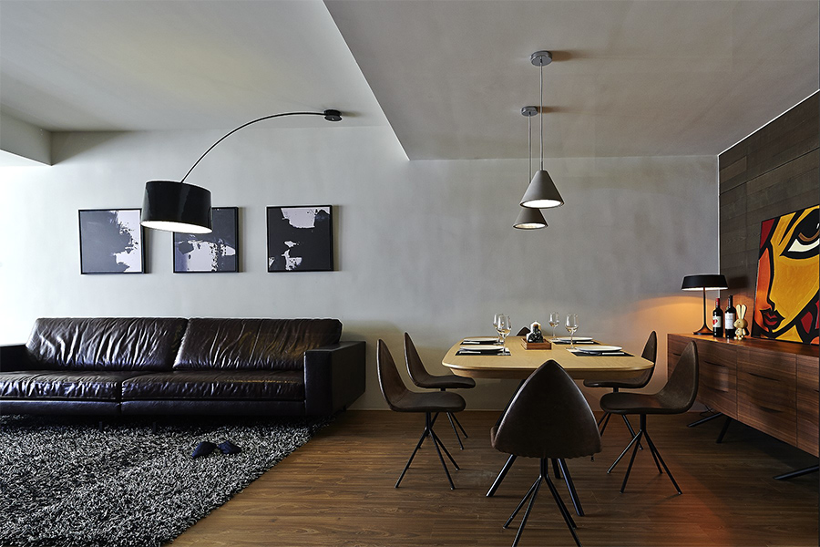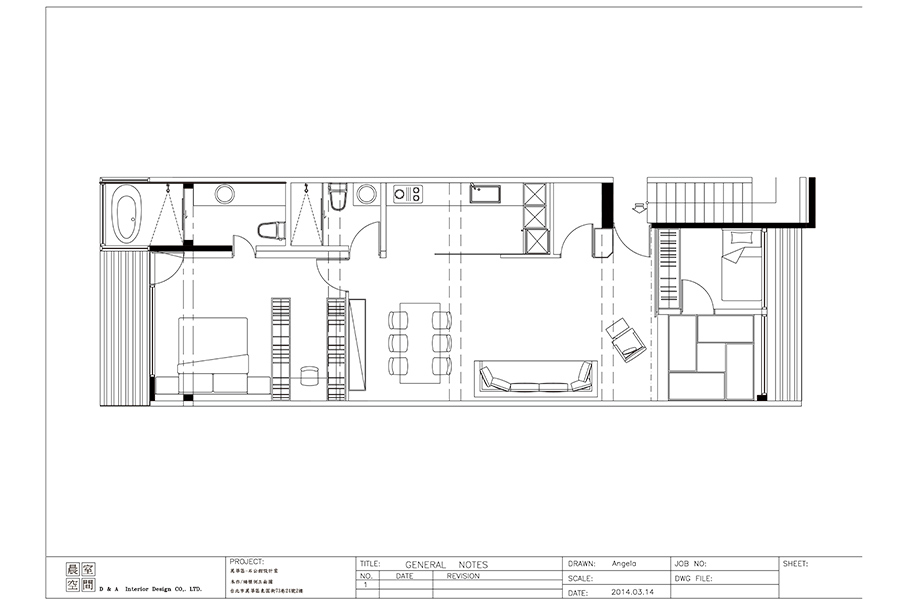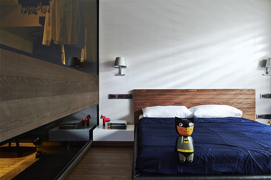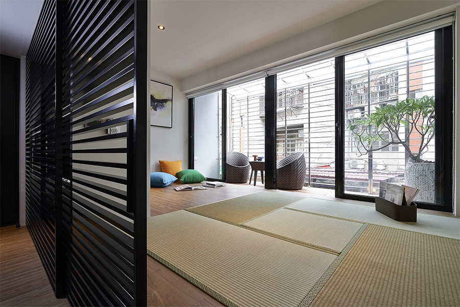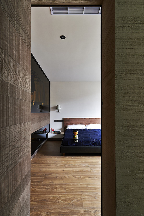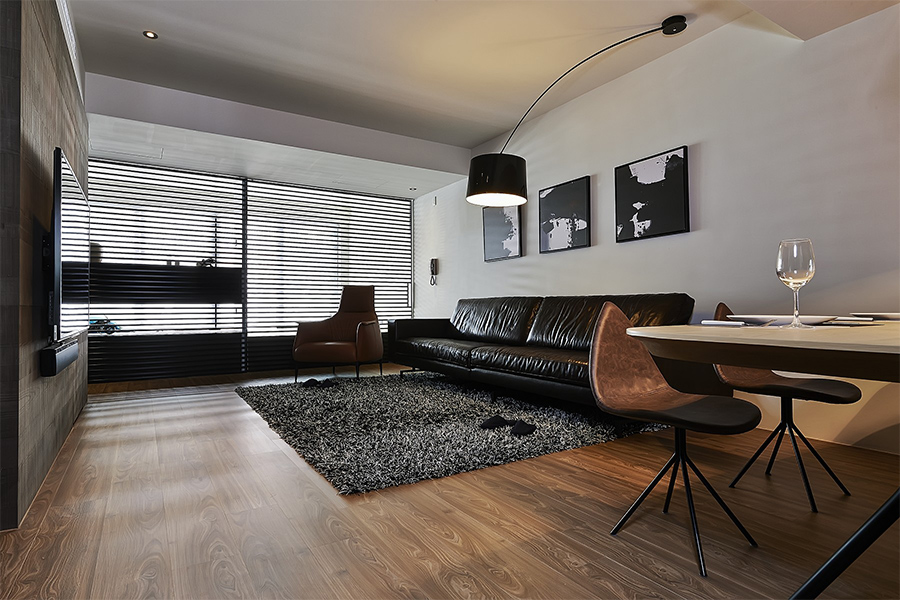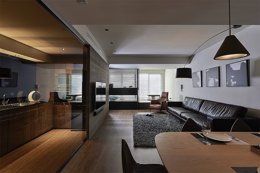 前言: 以光线为主轴穿透整个空间让结构上成一直线,主卧、起居的光线无阻碍的渲染空间。以木作牆面去串连每个空间,达到空间基调的一致性,餐厅、和室、客厅面向安排在同一轴线上,表现出小空间配置性的各种可能。以无隔间的概念将不同机能的空间整合在一地,也展现了设计师一贯的风格将重心放在活动性、自主性的规划,不必多预留空间,利用开放和连贯的机能,衍生出场域的焦点 Light is the center of design penetrating the entire space to create a linear prospect in which the light disperses without barriers throughout the main bedroom as well as other living spaces. Wooden walls connect each room and space to achieve a sense of spacial uniformity. The restaurant, living room and the tatami house are aligned to showcase designer’s creativity in the overall layout of smaller spaces. The concept of sans partition brings together spaces of different functions and displays the designer’s usual emphasis on mobility and autonomy. Spaces are not reserved or secluded, but overt and continuous, one linking another to navigate the spacial focus.