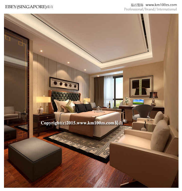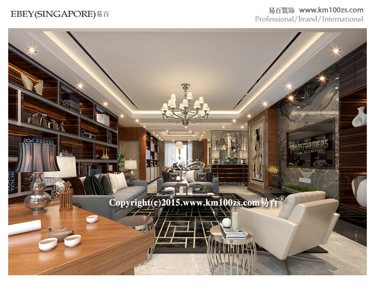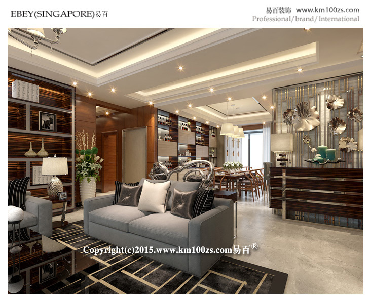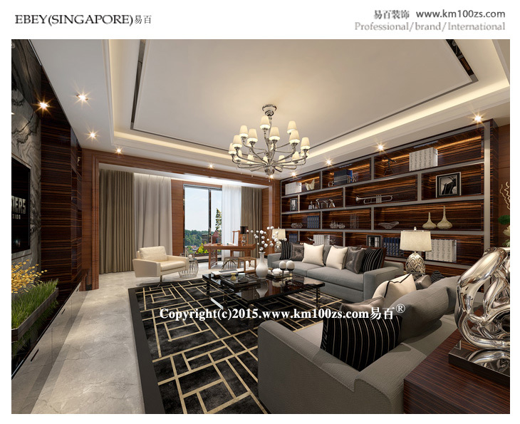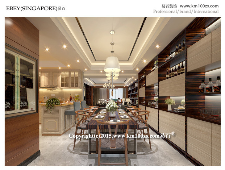 前言: 本套设计作品颇具港中风格的特点。色泽饱满、质地光洁的木材的使用,使得整个空间典雅大气,低调中透露着非凡的奢华气息。客厅以棕色为主调,展现了一个休闲的氛围,电视背景墙处理相当简洁而富有品味。布艺沙发环绕深色茶几像点缀珍珠一般,营造视觉中心,几个靠垫随意中反而加强了亲切感,柔和与宁静的光泽使整个客厅更具有人情味。