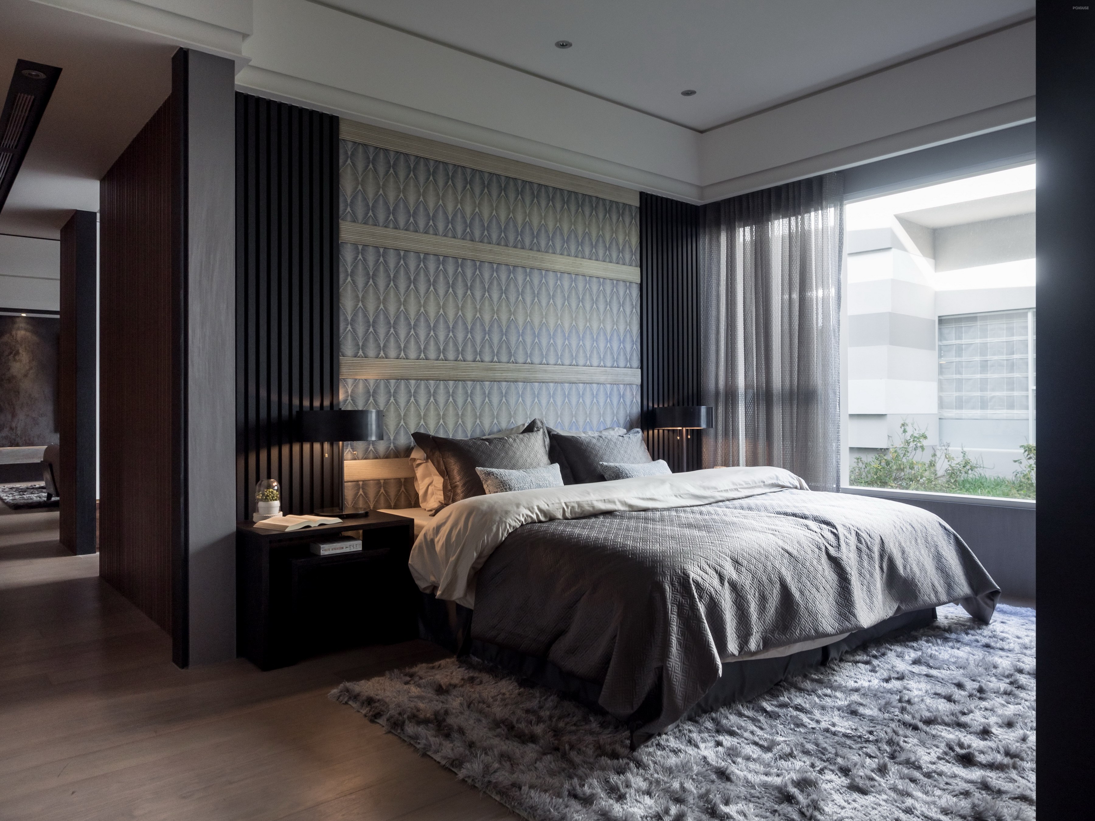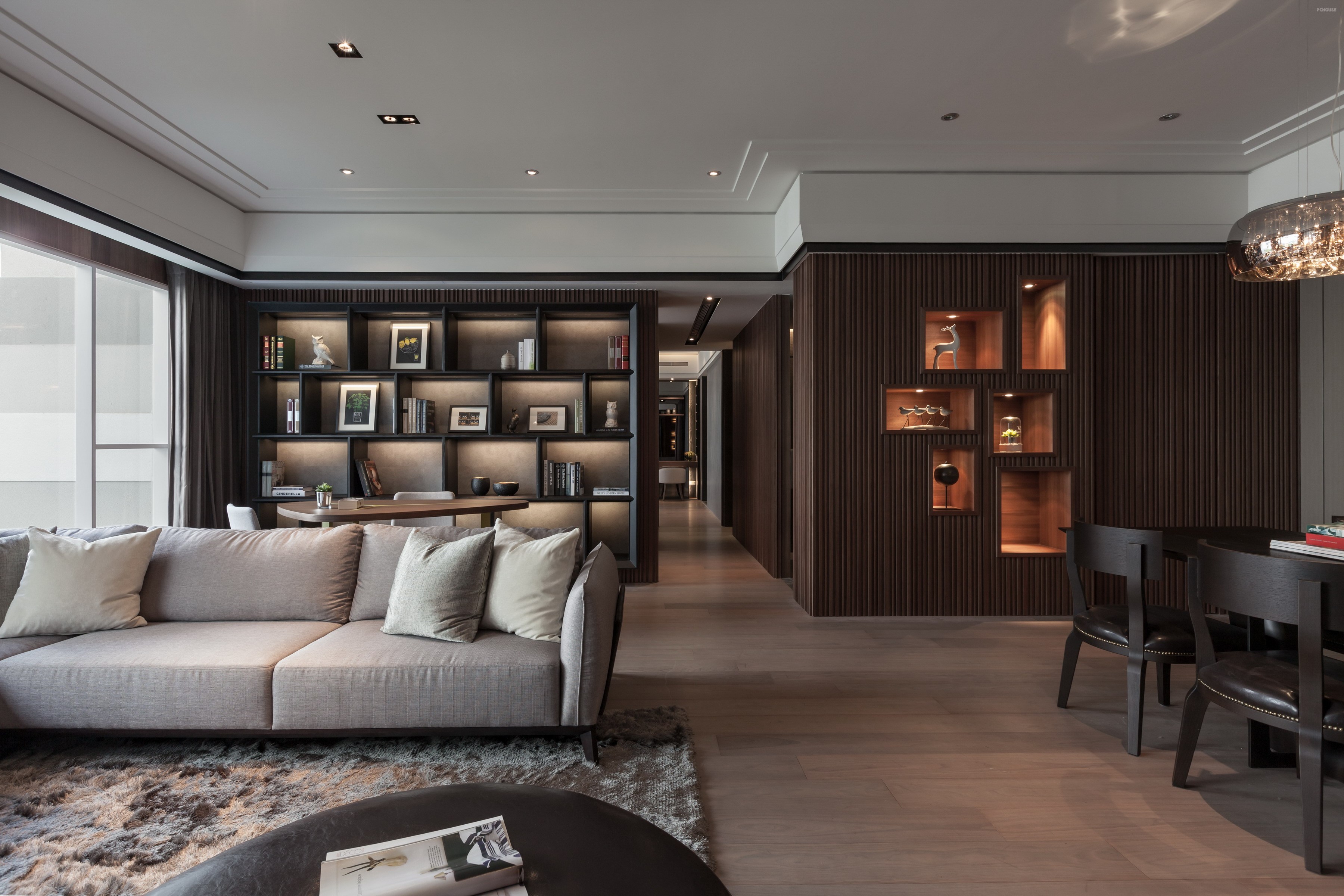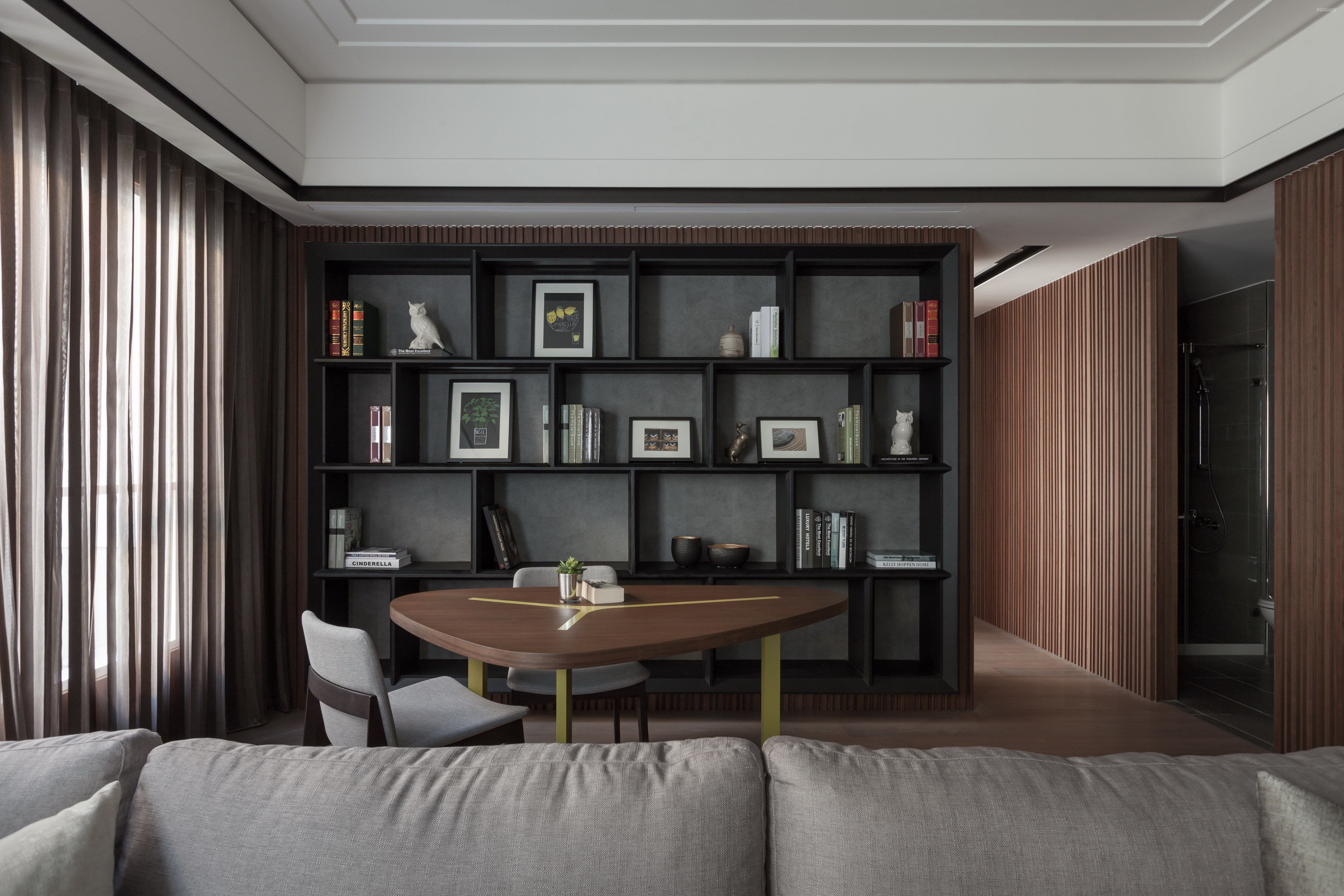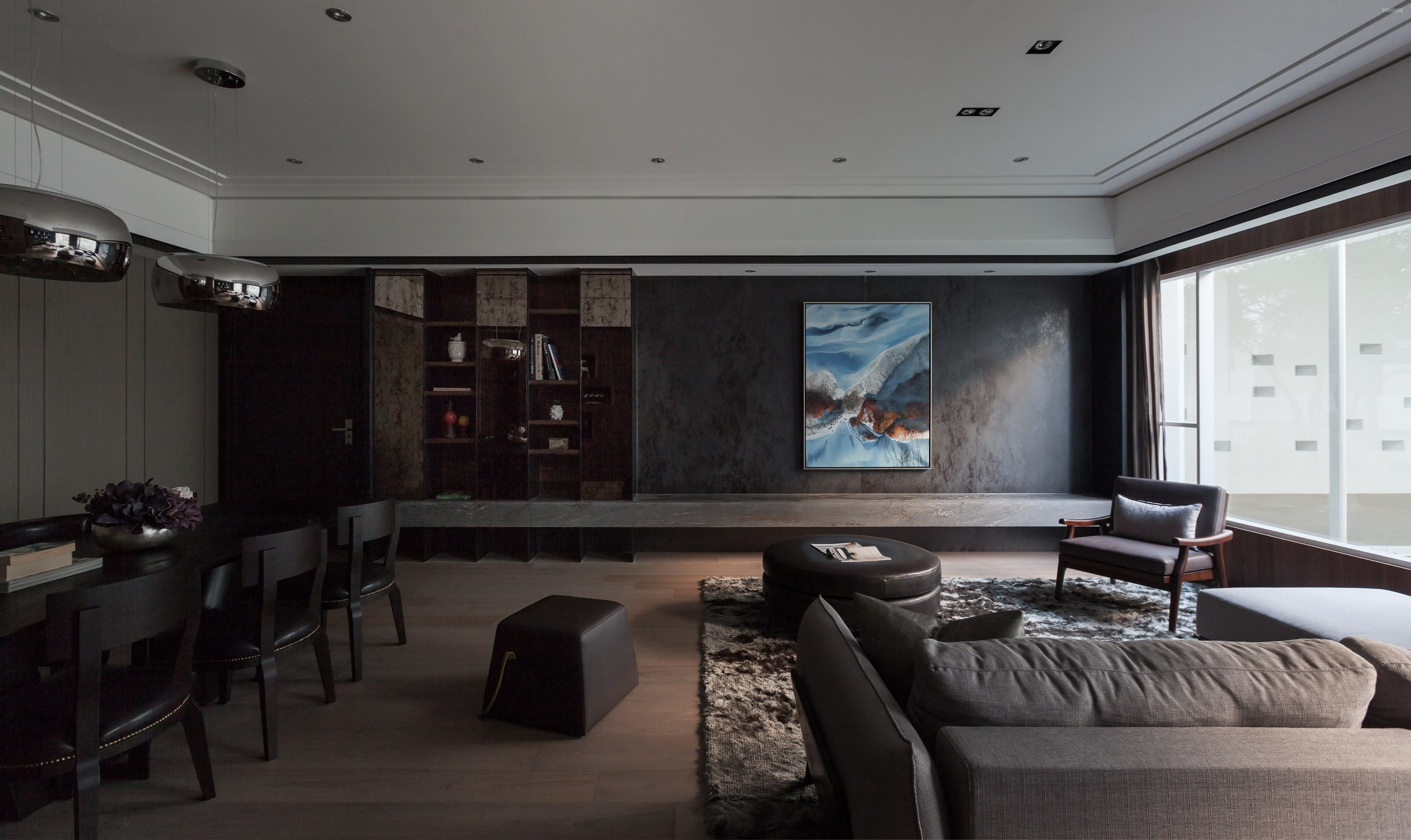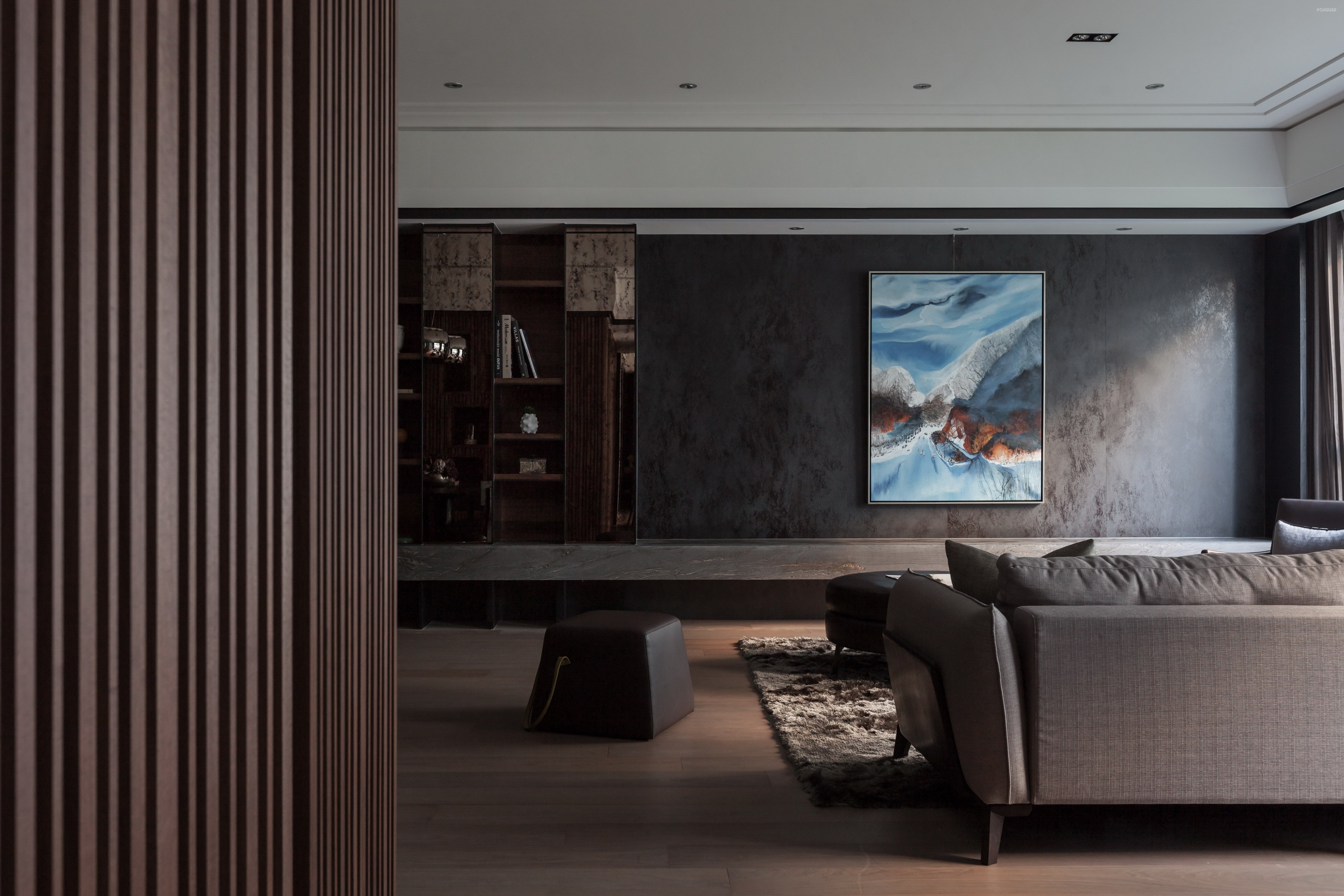 前言: 以凝聚家人情感為設計概念,將公共空間定義為匯集生活感受的中心,刪去各領域界限,使光線自由行走在空間的每個角落,家人間的互動也隨之無拘無束的進行著;並以仿舊金屬牆及復古鏡,對應溫潤木格柵,整體低調洗鍊的色調搭配,創造沉穩、安定的場域氛圍。主臥房以半高電視櫃作為睡眠區及更衣區的界定,塑造場域的層次;延續的天花造型形成視覺的延伸及穿透的空間感,溫暖的光線與低斂的色調,營造靜謐和諧的氣息。