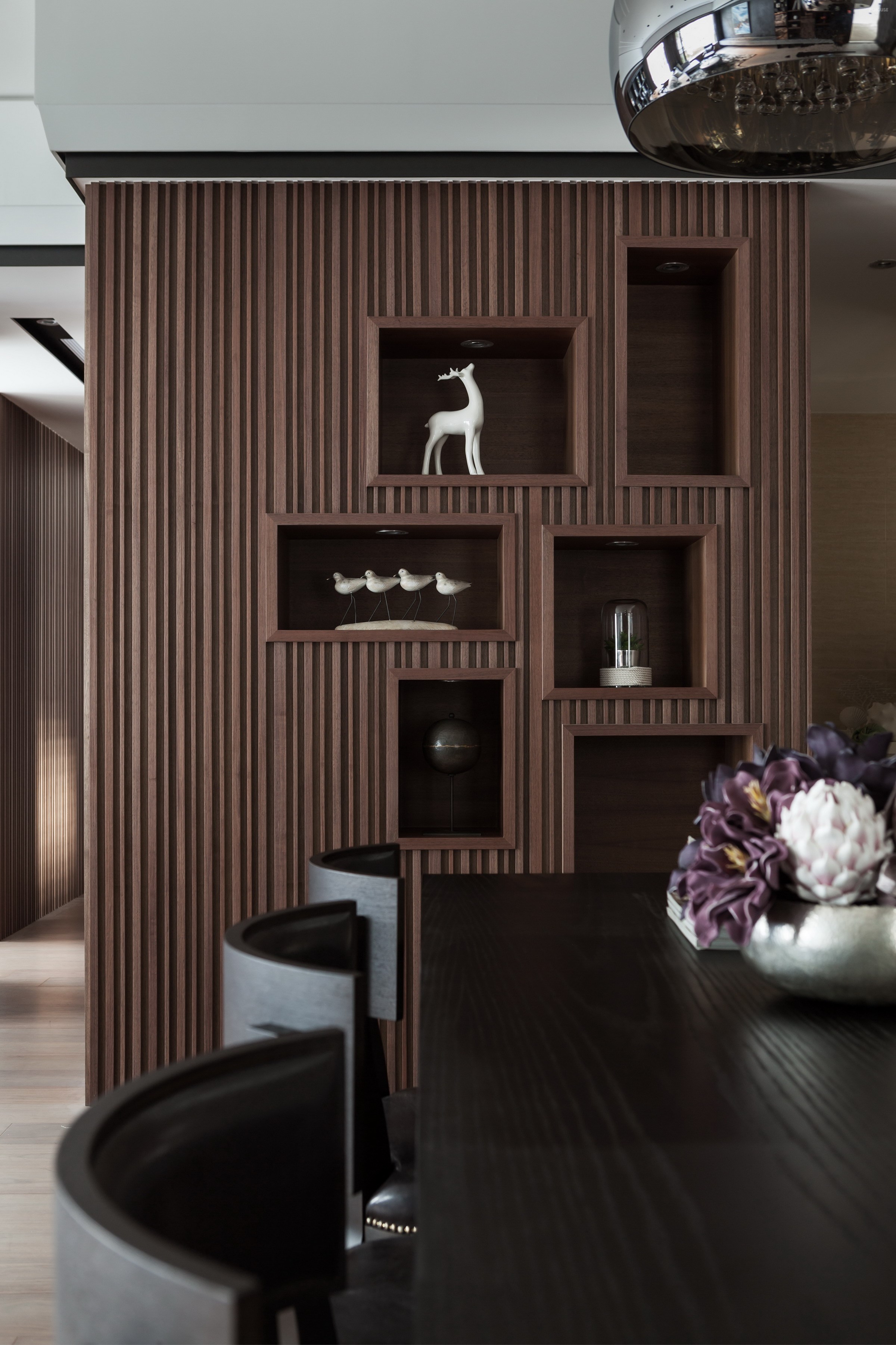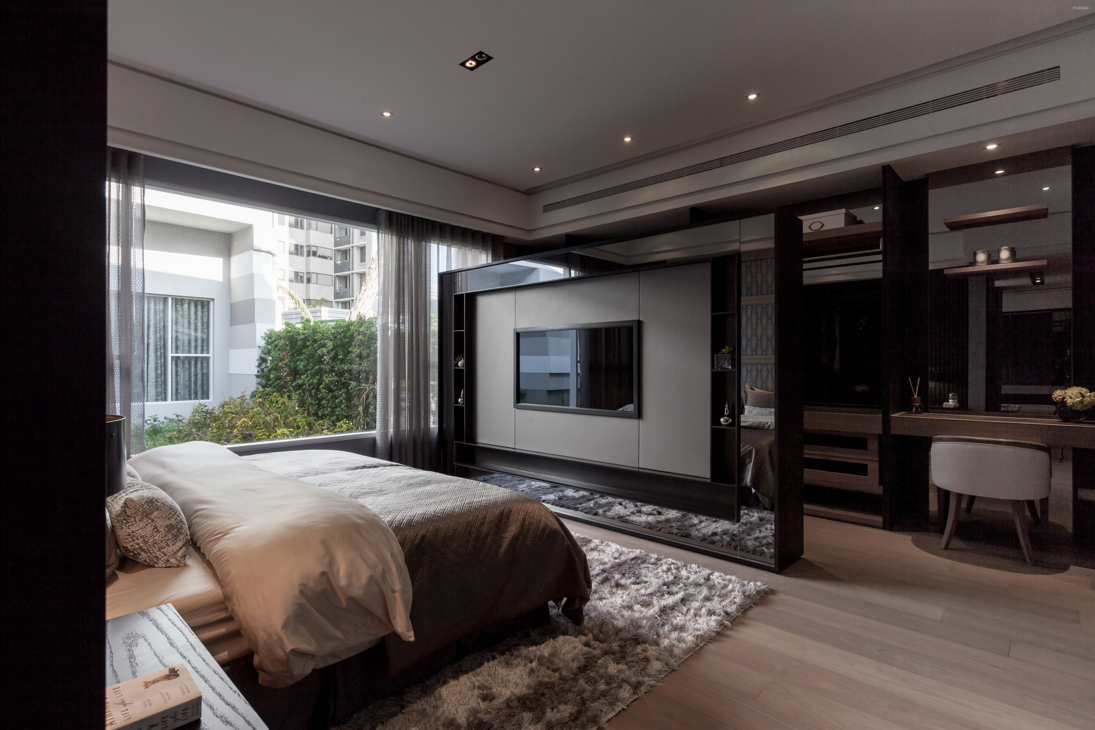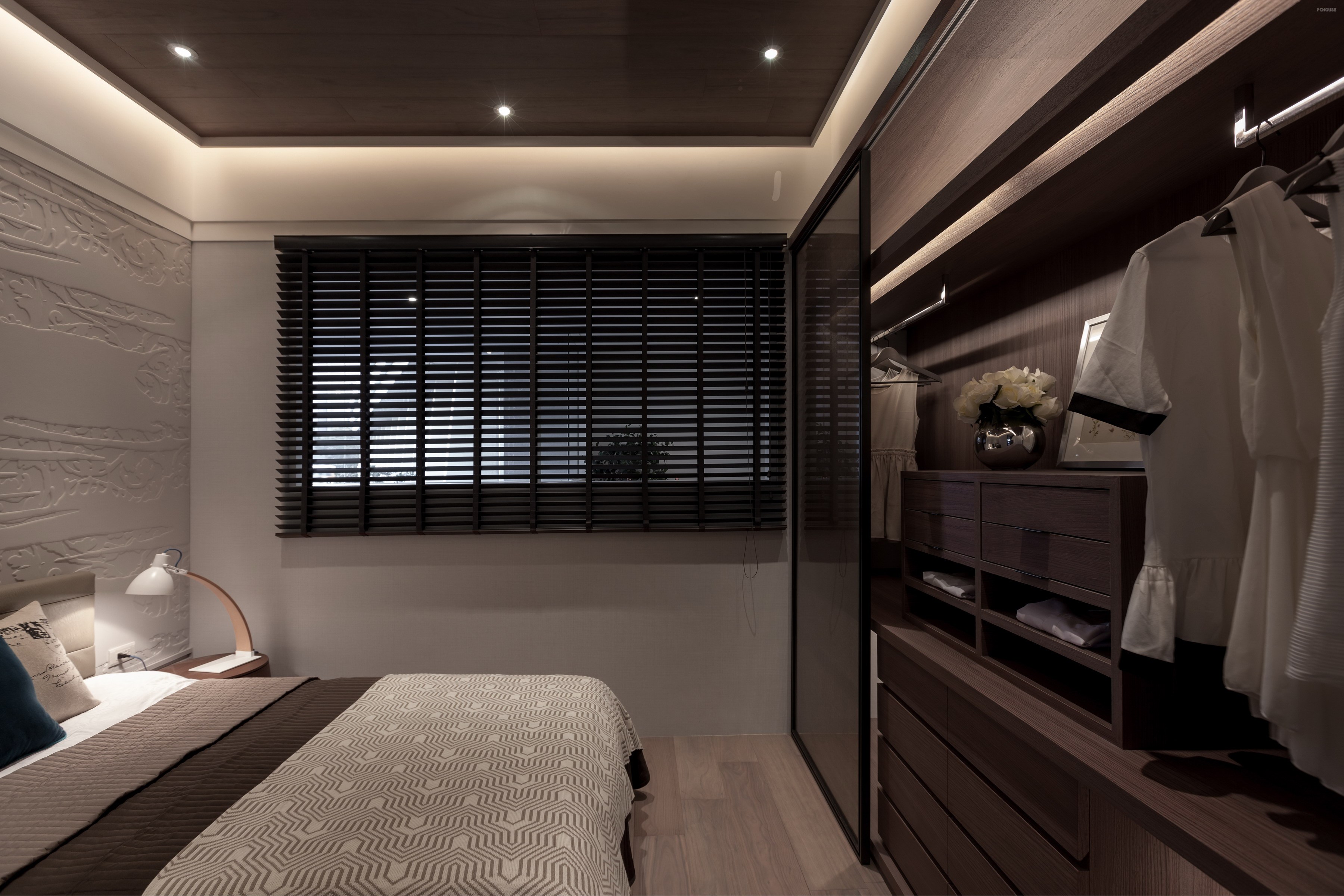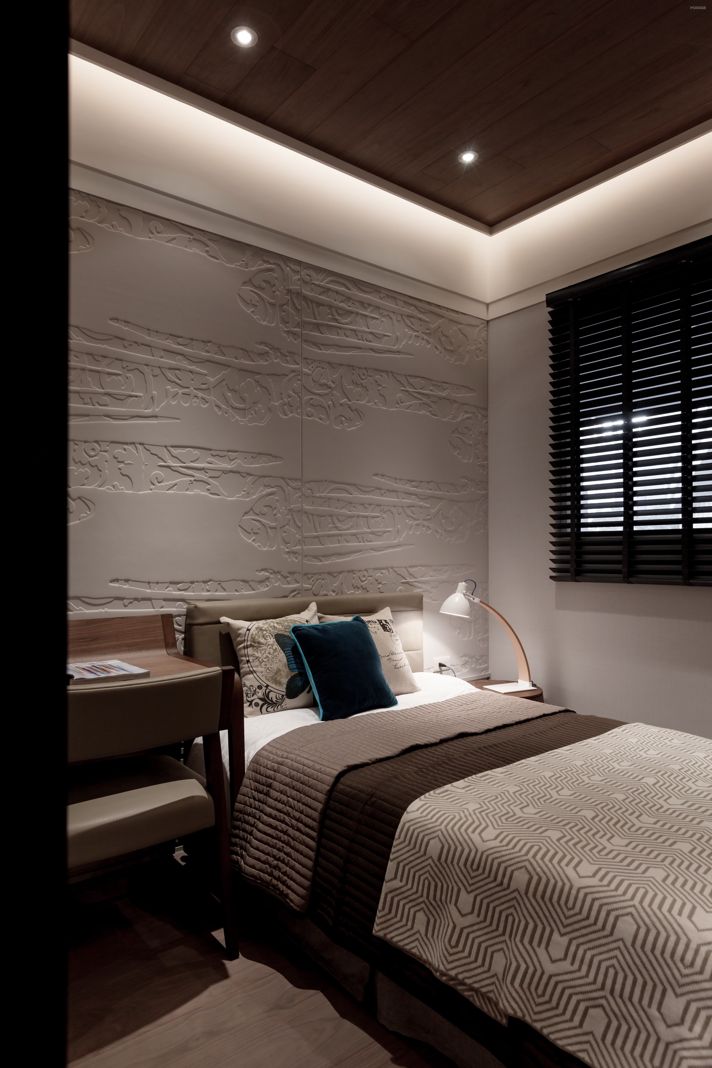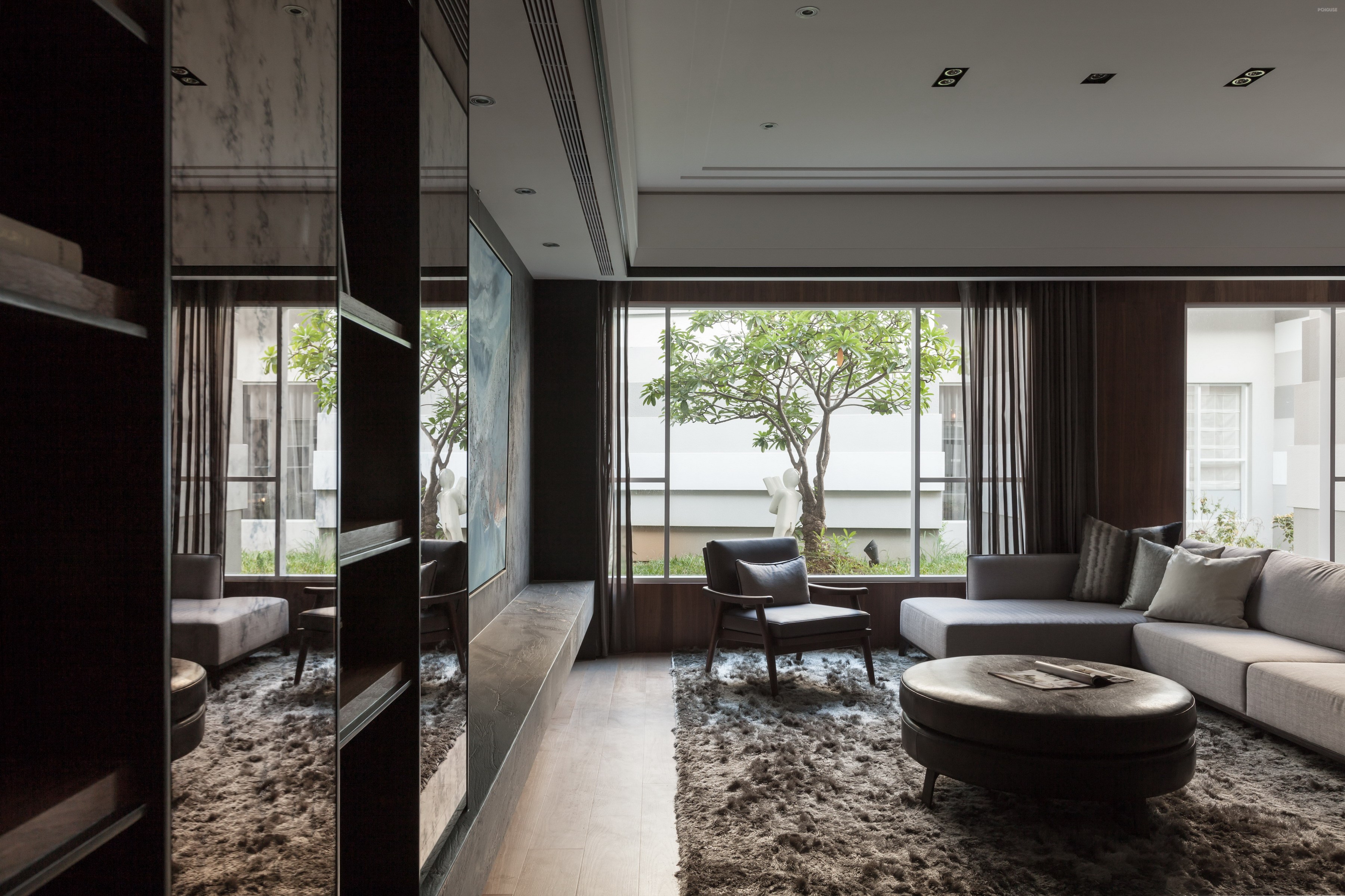 前言: 以凝聚家人情感為設計概念,將公共空間定義為匯集生活感受的中心,刪去各領域界限,使光線自由行走在空間的每個角落,家人間的互動也隨之無拘無束的進行著;並以仿舊金屬牆及復古鏡,對應溫潤木格柵,整體低調洗鍊的色調搭配,創造沉穩、安定的場域氛圍。主臥房以半高電視櫃作為睡眠區及更衣區的界定,塑造場域的層次;延續的天花造型形成視覺的延伸及穿透的空間感,溫暖的光線與低斂的色調,營造靜謐和諧的氣息。