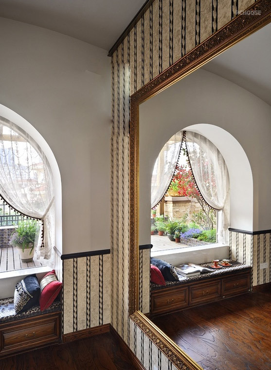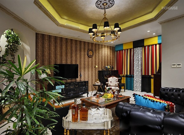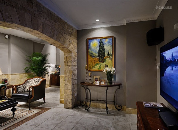 前言: 这栋别墅的户型还算方正,然而方正的户型未必是个好户型,或者更严谨地说,未必是好设计的户型,当然如果无所谓美感,山路十八弯,总能拐得出去,然而选择苛刻而唯美的人生,注定只能在披荆斩棘的道路摸打滚爬。L型客厅,导致沙发的摆放十分尴尬,电视和沙发距离太长各自为阵,台阶横在中间,客厅沦为通往后花园的走道,看电视时人来人往严重干扰,窗边寡料的位置象鸡肋,错层处堵根柱子导致去客厅和上楼的人容易塞车。说到柱子,想起个冷笑话,第一次见面,业主MM一脸天真地指着那柱子对我说:“这柱子凸出墙面太难看了,我想把它往卫生间这边移????????”我惊愕地看着她,勇者无畏。有的户型打量一眼就知道先天残缺,而这套属于貌似简单但认真推敲下哪儿都不对头,每次陷进迷雾的时候,只能坚信一定有个最佳方案,而自己只是还没摸索到迷宫的出口,每天拿着火把在里面打转等待奇迹出现。 回想方案形成的思绪先后,当时应该是先考虑怎么消融错层处孤立的那根柱子,如果一排纤细的栏杆后面收根大柱子,比例惨不忍睹,在纸上圈来圈去某天无意中切出个斜面,于是尝试着中间的八角形是否成立,画一下面积还够,欢呼一声,再来计算错层处台阶的出口会不会碰到沙发,这一环扣一环,哪儿尺寸差些方案都无法成立了,平面画完很有几分喜极而泣的雀跃,这同样的户型要是再来一套,绝对不干了,我的智慧在这一役中已经消耗殆尽。