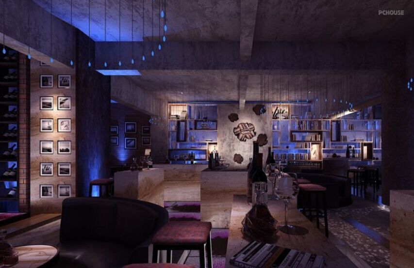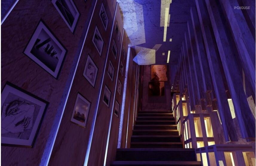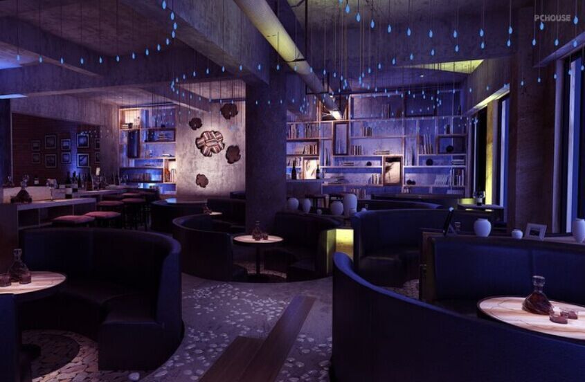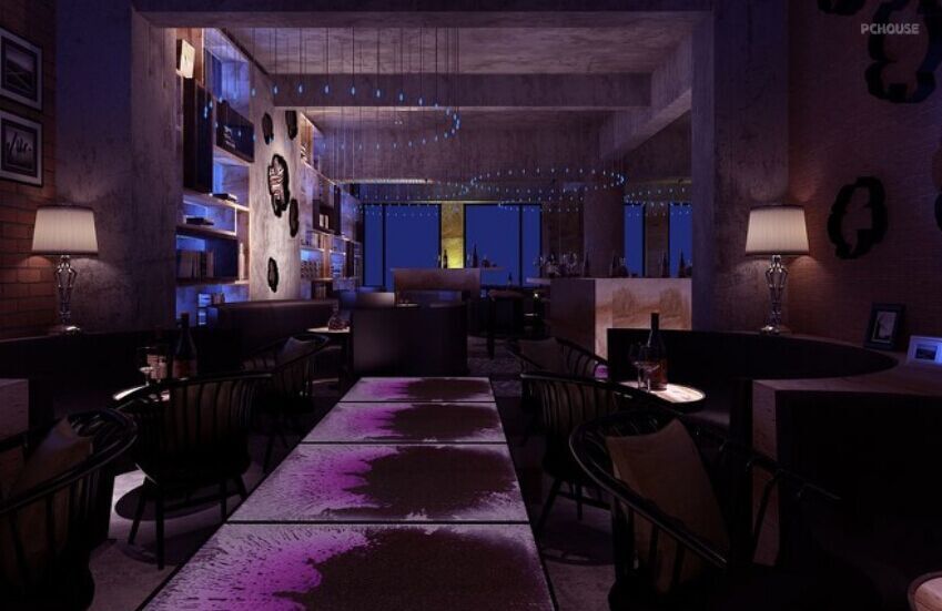 前言: 整个装饰色调以冷紫色为主,寓意为创造出一个惬意的,幽静的一个环境。“开到荼蘼花事了,尘烟过,知多少?”荼蘼花开,表示感情的终结。爱到荼蘼,意蕴生命中最灿烂、最繁华或最刻骨铭心的爱即将失去。繁盛之后留下的也许是一片颓败,又或许是归于平淡,但最后的美丽总是动人心魄,让人永远追忆,让人无法忘怀。人生后面的岁月里,也许只能在梦境中与春天相约,与荼蘼相守。酒吧就是以这样一个境界给人们提供一处沉静自己心境的一个地方,坐下来喝喝酒,聊聊天,看看书。让人们有个远离世俗和喧嚣,沉淀心情的去处。 空间布局以圆为元素,划分出散座区,类似荷叶漂浮在水面,中间有个发光T台,散座散落在两侧,在星星点点的灯光衬托下,营造出荷塘月色诗意般的意境。 材质上多以自然材料老木板为主,结合生锈钢板、镀锌钢管、麻绳等质朴材料,给酒吧空间一个全新的诠释