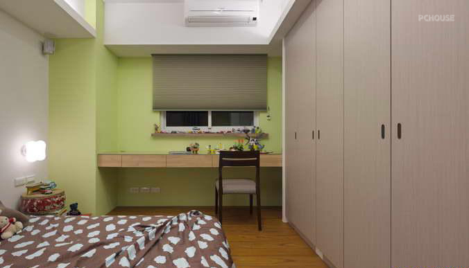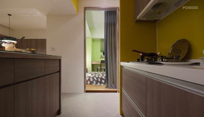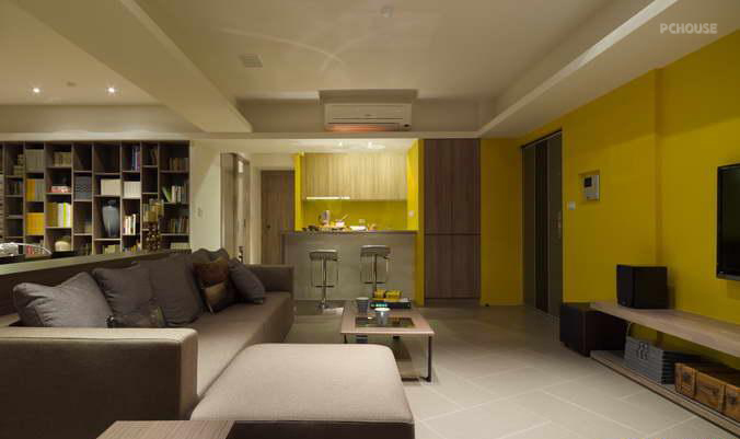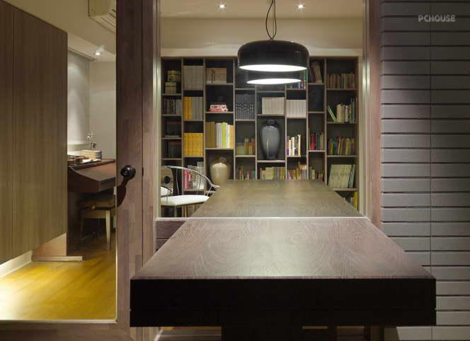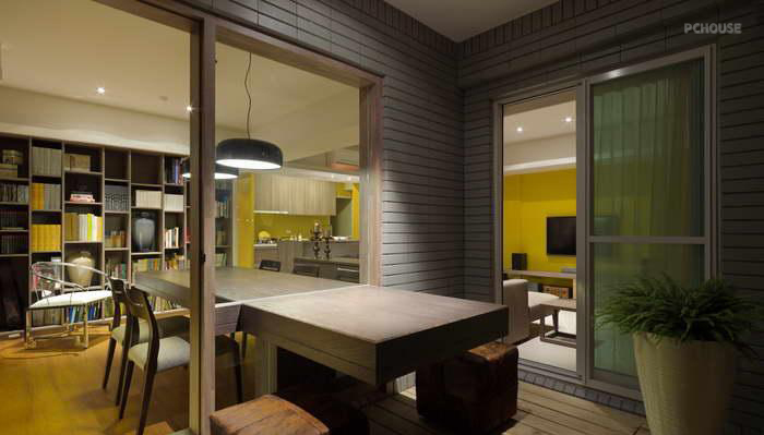 前言: 本户位于淡水,屋主夫妇育有一子。此宅的配置并未大幅变动,仅以重点局部变更。客厅与书房,以及书房与户外阳台之间,设计团队分别以「矮柜家具」以及「串连室内与户外的悬空大桌子」营造空间的延伸与视觉上的穿透感。 以铁件强化,表面辅以钢刷铁刀木实木贴皮的半悬空大长桌,表面触感粗犷饶富自然气息,串连着「户外阳台绿意」与「静谧的室内餐厅与书房共享的空间」一脉延伸…..。另外,客厅与厨房以料理吧台区隔,儿童房与厨房则是以窗帘、落地墙清玻璃,搭配木作推拉门相隔,妈妈忙着烹调的同时,可以一并兼看孩童在室内活动的状态。此一吧台配置有两把吧台椅,业提供了更多的空间互动。 整体空间以鹅黄色为主色调,辅以中性色的黑灰白,塑造出一个静谧而内敛的空间氛围。窗外的绿意蓝天,则可以透过书房一览无遗,在此阅读与书写,甚至是用餐,都别有一番风味。