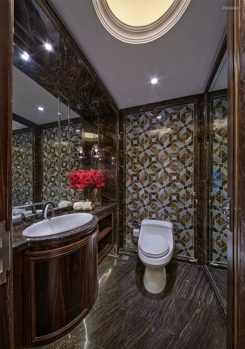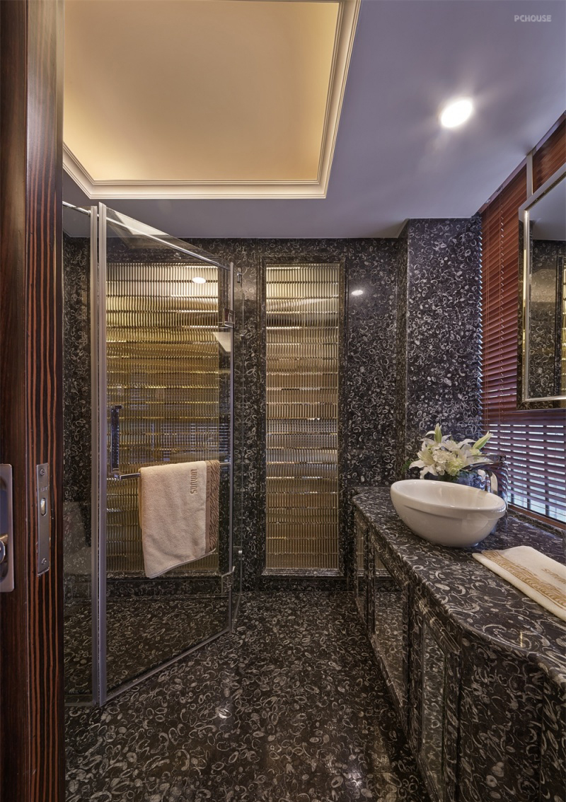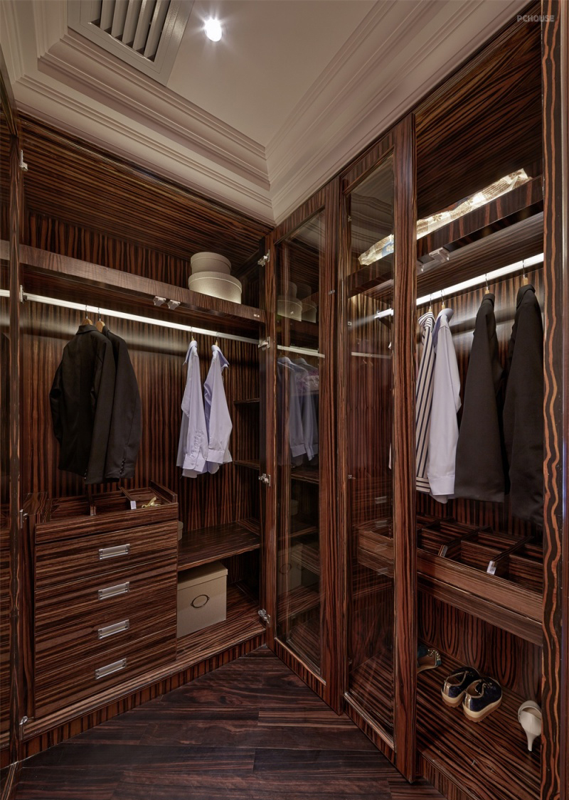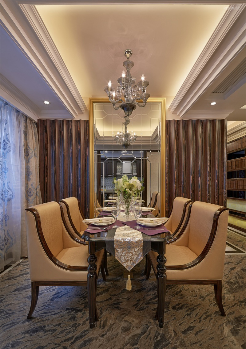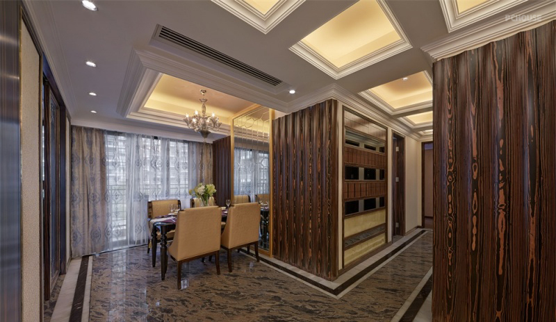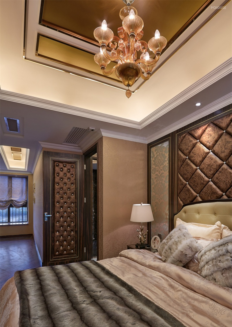 前言: 该空间将会运用不同颜色的碰撞,让斑斓的色彩给人耳目一新的视觉感受,男主人虽然是个生意人,但比较传统非常注重家庭。生活的兴趣与欧式新古典巧妙的交融,让主人可以在这里得到自由的呼吸,不局促、不肆意。 走进客厅,仿佛走进了悠远宁静的东方国度却又不失现代的摩登与优雅,运用黑与深咖色为整体色调的基础,通过不同材质和镜面的对比,让空间产生强烈的视觉映像。东方元素配以流光异彩的水晶器皿,现代气息的活力让整个空间层次丰富。 在卧室中,叠加的米褐色调,仿佛有魔力般将人拉进空间,丝质的床品、恰到好处的灯光,极好地烘托出经典居家的整体气质,令这里温馨而不乏摩登。