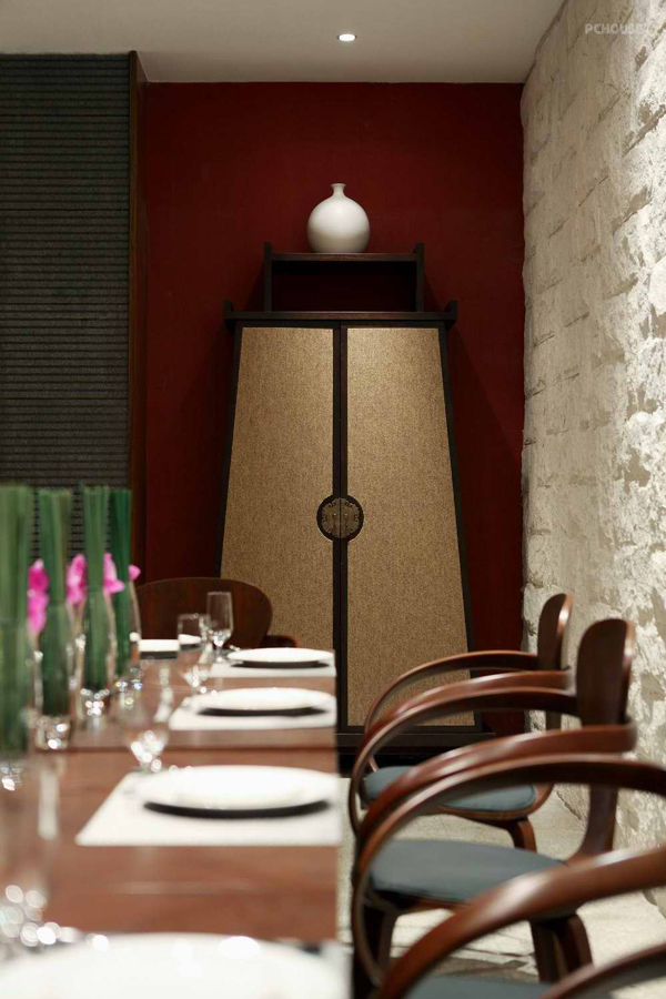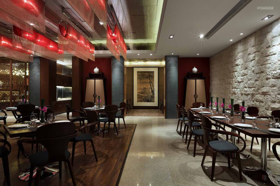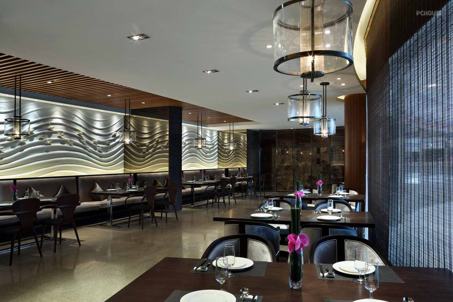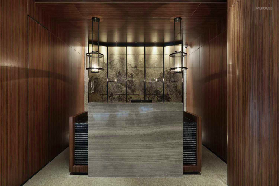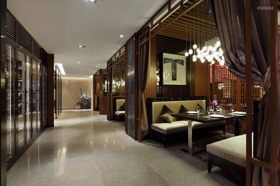 前言: 人感染空间,空间呼应人,方是东方哲学里的“天人合一”之道。作为购物中心的有机组成部分,粤港食府是形态上的共生、风格上的延续和功能上的补充。设计师从各方面营造出含蓄内敛的新东方风格空间意境。运用东方元素提炼,入口前厅极力营造出藏书阁般的人文氛围,通过各种材料的组合搭配,减抑商业性,突显书卷气,让内外部环境气韵浑融。