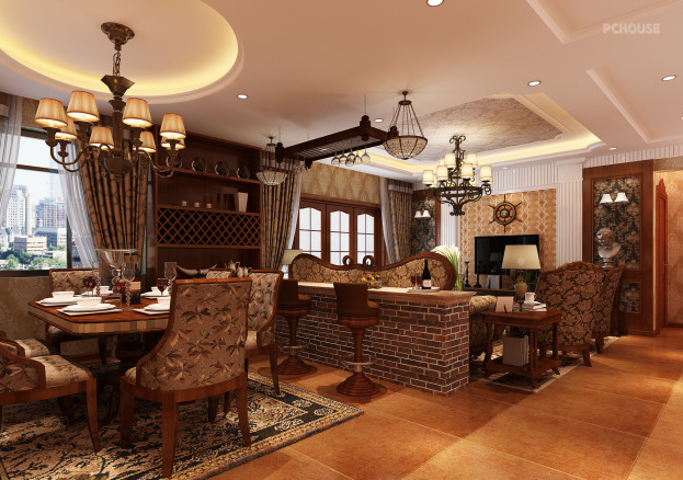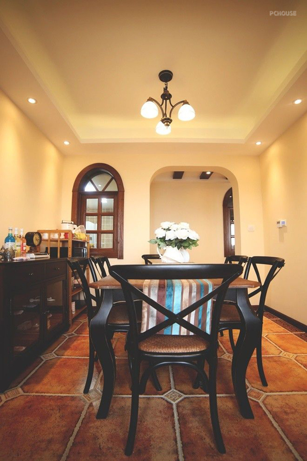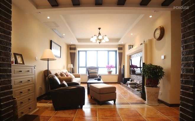 前言: 设计上讲求心灵的自然回归感,给人一种扑面而来的浓郁气息。把一些精细的后期配饰融入设计风格之中,充分体现设计师和业主所追求的一种安逸、舒适的生活氛围。这个客厅大量使用碎花图案的各种布艺和挂饰,欧式家具华丽的轮廓与精美的吊灯相得益彰。墙壁上也并不空寂,壁画和装饰的花瓶都使它增色不少。鲜花和绿色的植物也是很好的点缀。