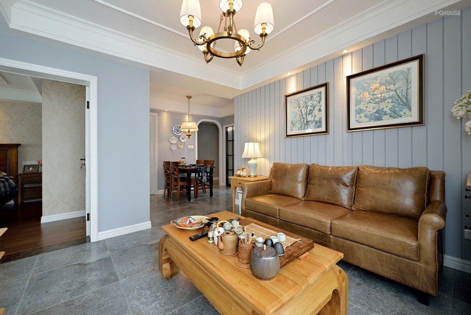 设计以舒适休闲为主,将线条感与舒适性自然完美地结合,在不经意之间透露出另一种休闲浪漫,这就是美式休闲生活方式.本次设计以现代美式风格为基调,优雅的粉蓝色贯穿整个空间,无论是墙体的颜色,软装的配饰还是墙砖总能在不经意间勾起人们的浪漫情怀。