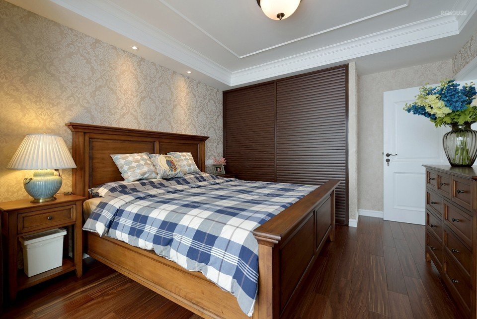 主卧作为业主休憩的场所,已不再需要过多的装饰,浅色、木地板的运用让它回归至身心放松的圣地。壁纸与乳胶漆结合,不再使整个空间单调,静怡淡雅的色调让主人的身心无比放松。