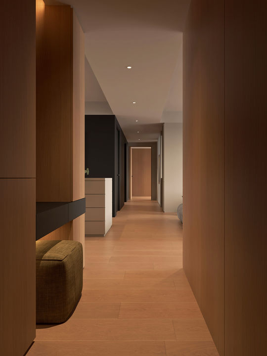 前言: 本案设计在满足功能基础上,在空间装饰上选用黑白灰色调三种颜色为主题,尝试空间的永恒,进而实现空间的价值。黑白灰配以香槟色,时尚且雅致。简欧新古典,丰富却不繁乱。合理利用空间,将电视背景墙打造成壁柜,更方便且实用。玻璃的墙面,使餐厅变得通透,不在阴暗,空间得以延伸。 同一空间变化的壁纸,使空间中的主次更加分明,和谐统一。整洁光亮的浅色地面让整个深色搭配风格下的环境变得开敞轻松了许多。与白色的墙面顶面和深色的软转形成了鲜明的黑白灰对比。天然石材使得空间更具品味。绒面窗饰及沙发布面与水晶灯饰,衬托摩登的靓丽精彩。作品能够从效果方案开始到施工彻底的执行,多变空间、百变色彩,本案在探索的正是不变的永恒。