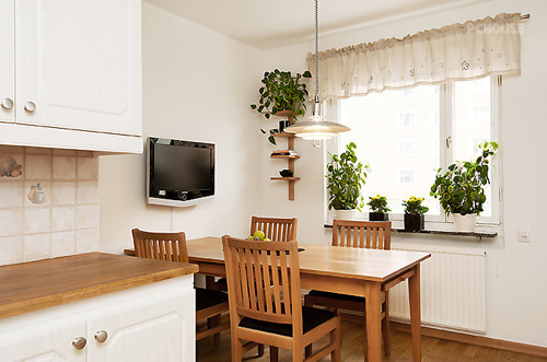 前言: 今朝装饰老房改造现代简约日式 一看这组家居图片,第一感觉就是非常清新宜人,大概是75.5平方的面积大小,粉刷得雪白的墙壁,光线很好,客厅是尼斯大窗户设计,提供充足的自然光线的阳台门,地板都是统一厚厚的真正的橡木镶木地板,透过舒适,宽敞,明亮的客厅,就是大概8平方尺的阳台,非常大,这绿色的主调会令人感觉这是庭院。