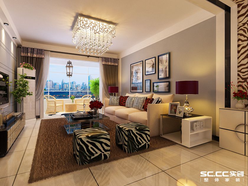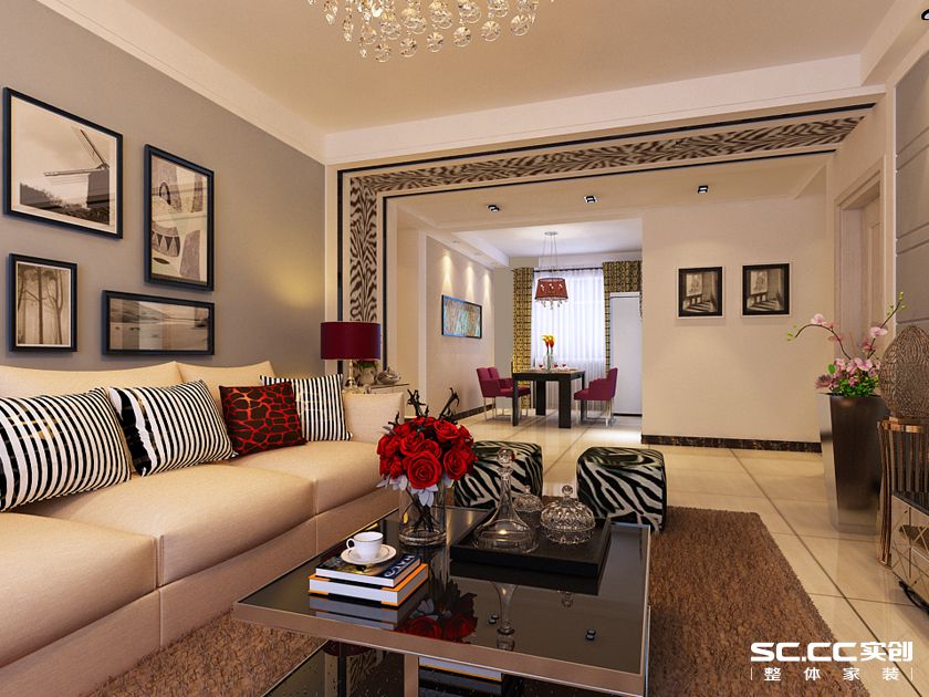 融贯了现代生活的时尚感,加入了现代化的黑白色调,客厅整体的效果干净明朗 ,颜色亮丽且个性的灯具点亮了整个空间,利用房间的取光性使得整个空间清新 而且温暖。
