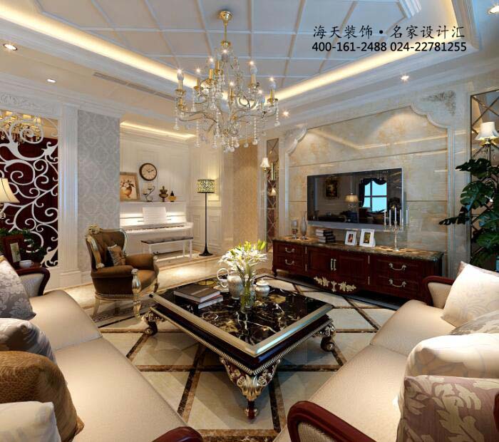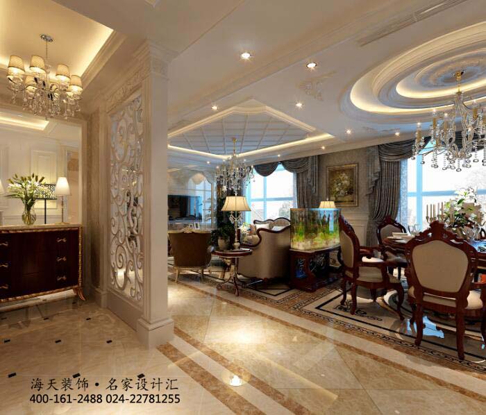 前言: 工程地址:沈阳市万科城 户型面积:168㎡ 设计师:牛继滨 大宅设计风格:欧式新古典设计风格 大宅设计说明:本案采用新古典手法,无论是家具还是配饰均以其优雅、唯美的姿态,平和而富有内涵的气韵,描绘出居室主人高雅、贵族之身份。常见的壁炉、水晶宫灯、罗马古柱亦是新古典风格的点睛之笔。整个空间给人以开放、宽容的非凡气度,让人丝毫不显局促。 海天装饰跨年活动 活动内容: 名家设计汇,征集18户大宅业主享跨年大礼,凡在12月31日前签定设计合同,即享: 1、赠风水大师大宅堪舆布局规划 2、尊享设计大咖量身定制专属大宅平面布局规划方案一套 3、设计费史无前例8折优惠 4、施工签单赠千元主材代金卷 5、软装全案免费设计,享高端家具4折起优惠 (软装方案中的家具,可到商场对比价格,不花冤枉钱。) 海天装饰名家设计汇,服务热线:024-22781255,400-161-2488