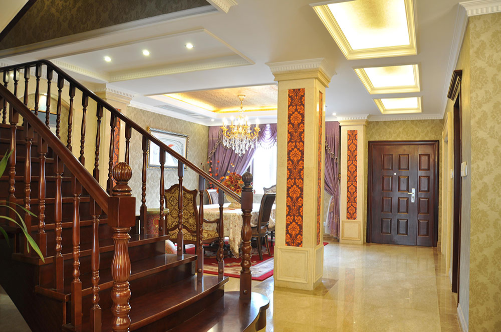 前言: 项目名称:半山丽墅 户型:别墅 面积:240平米 装修公司:金煌装饰 咨询电话:0731-8992 5818 该套案例风格是欧式风格,作为当代主流设计风格之一,欧式风格继承了巴洛克风格中豪华、动感、多变的视觉效果,也吸取了洛可可风格中唯美、律动的细节处理元素,通过名贵木材、水晶吊灯、墙纸、精工石材、地毯等元素,为空间营造出浪漫、华美的氛围。