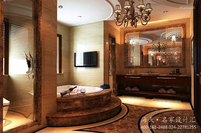 前言: 海天名家设计汇,22年专注高品质大宅别墅全案定制! 装修设计案例>>>>> 项目主创:创设计事务所(海天装饰名家设计汇) 设计总监:张野 项目名称:沈阳市于洪 碧桂园银河城 项目面积:375平米 房屋结构:洋房一层加地下两层 设计风格:新中式风格设计 服务热线:024-22781255,400-161-2488 客服QQ:315736628 海天名家设计汇:http://www.yssjjg.com