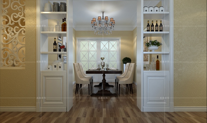 前言: 古典欧式风格与现代家具的融合,造就出明快简单的简欧风格家居,酒柜的巧妙利用增添了空间的层次感。