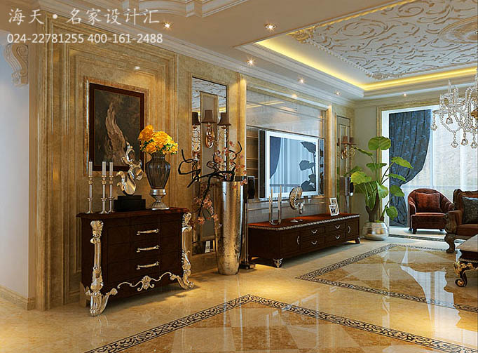 前言: 海天名家设计汇,让业主与设计师直接对接,省去中间环节! 工程地点:和平区文体西路 世茂五里河 户型面积:245平米 设计风格:豪华欧式 工程造价:23万元 主材造价:300万元 主要材料:微精石.实木墙板.天然玉石.理石.壁纸. 这是一间采用欧式风格设计的大客厅。它以暖色为基调,配以米色墙纸及传统花纹图案的纯毛地毯,质感厚重的酒红色窗帘庄重大方。传统意大利家具及皮布结合沙发,采用围坐式摆放。 不会搭配家具怎么办? 海天名家设计汇,“免费”赠送整套软装设计方案! 名额有限,打电话即可报名! (软装方案中的家具,可到商场对比价格,不花冤枉钱。) 服务热线:024-22781255 400-161-2488 QQ咨询:315736628 海天名家设计汇:http://www.yssjjg.com/