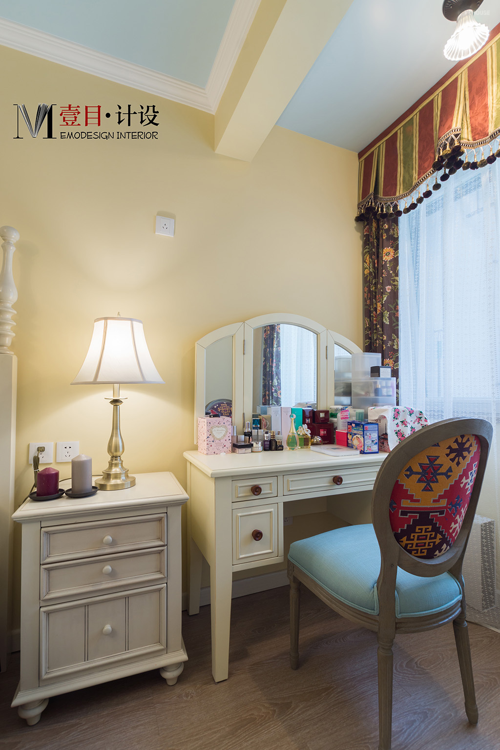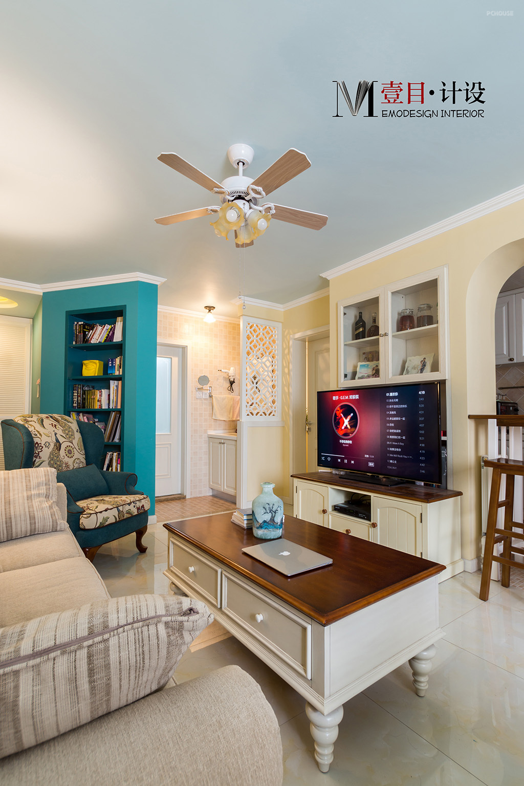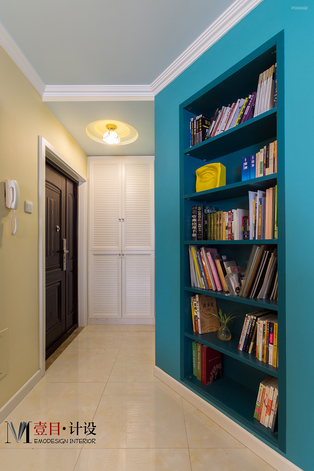 前言: 装修房子,不仅要比设计,拼空间的合理利用,还要拼美观,看细节装饰是否够小资。壹目设计,让您居住在美感与机能兼具的良好空间之中。 这套装修案例,整体很实用,很舒服的感觉。淡淡的生活气息,小资情调蔓延在每一个角落。 进了入户门,颜值爆表的蓝色墙面书架轻松营造出整个空间舒适、惬意的氛围。 无论是家具、装饰画还是小摆件都能感受到浓郁的色彩和清新的自然风。 美式家居风格突出了生活的舒适和自由,也正因此所以备受年轻人喜爱。 设计师在空间的有效利用花了许多心思,开放式厨房可以有效地建立起一种温情暖意的家庭氛围,电视等娱乐用品也放在这一空间中,可以想象在电视广告的声色、锅碗瓢盆的和乐、孩子嬉戏的杂音下,这三区一体的其乐融融。