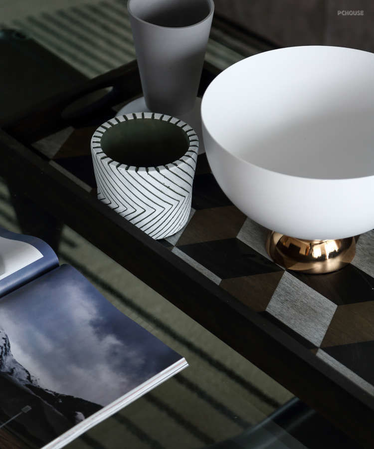透明的餐边桌充满现代感,装饰性墙饰也具实用性