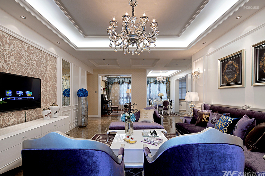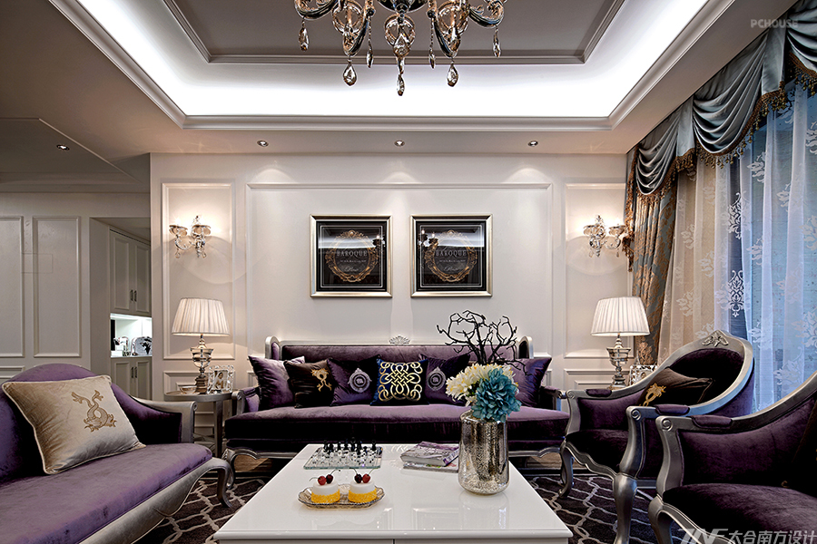 前言: 温馨明亮的空间,高贵典雅的白色木线,时尚奢华的家居,纯色与隐花相融相成,无不透出主人对生活完美极致的追求,以及品味中并渗透着对生活的热爱。 Dior是女主人的情有独钟,所以薰衣草色在家居饰品中得到淋漓精致的展现。优雅与高贵,时尚与魅惑,都是本案特质的彰显。奢华之外,主人还有着一种对自然气息的向往和追求,琴房里那幅白桦林足以见证。