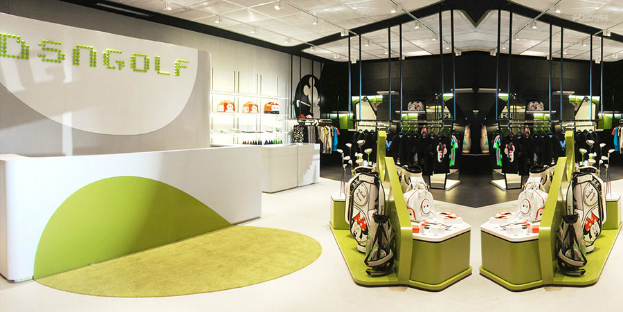 前言: 这个项目空间的整体造型创意来自于高尔夫球杆和Mickey的鼻子,在保证门头角度造型的同时,让Mickey的鼻子在门头呈现出悬空的效果,这在深化过程和制作工艺上都是一件耗时耗力的事情。鲁小川这次的设计将空间设计与品牌策划结合在了一起,这样的结合更能吸引人的眼球,在之后的上海发布会上也获得了甲方的支持与喜爱。整个空间运用的主色调是绿色,配合以白色和少量的黑色,营造了一种简单、健康、活力而又环保的氛围,地毯打造的试衣间别致又显舒适,亚麻油打造的墙地面干净明亮,绿色烤漆更是显得轻盈活泼。